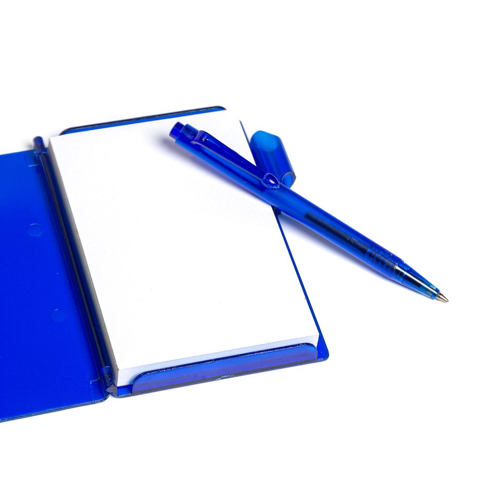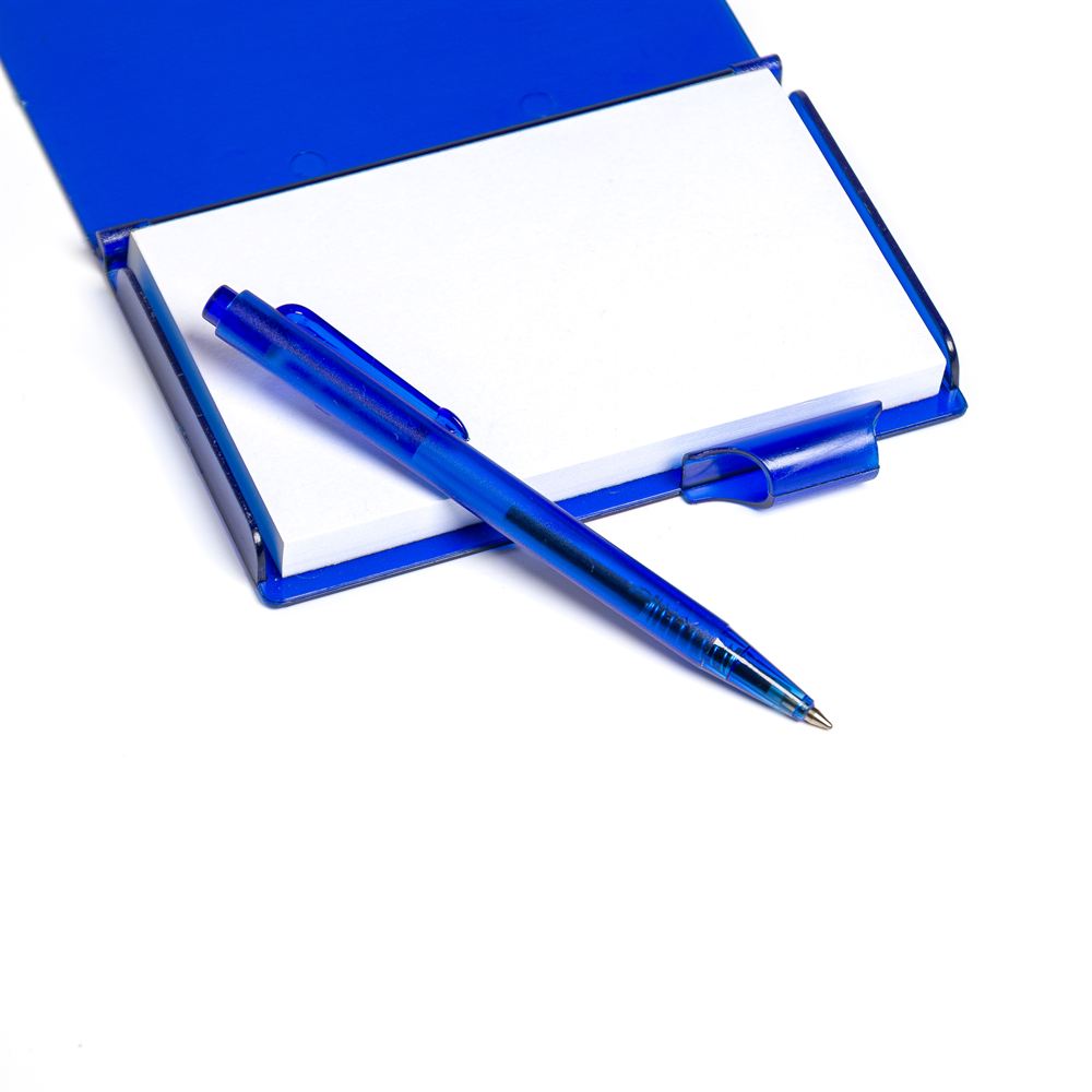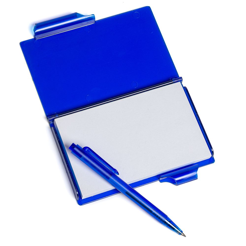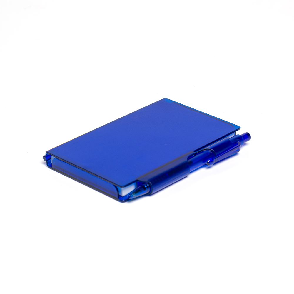 Anotador con bolígrafo Contiene block de 100 hojas en su interior. Material: plástico. Dimensiones: 10,5 cm alto, 8 cm de ancho.