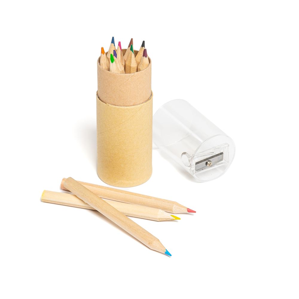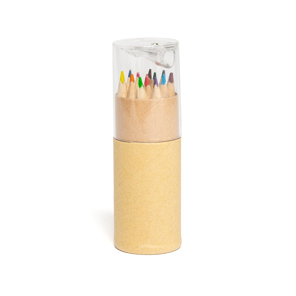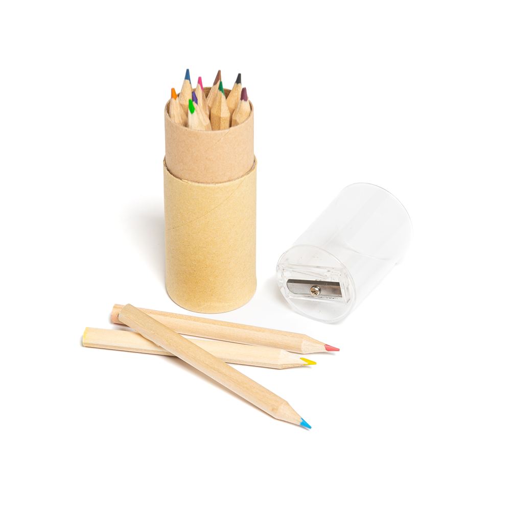 Set de Lápices Descripción: Set de lápices en tubo de cartón con tapa plástica que provee saca puntas incorporado. Contiene 12 lápices. Dimensiones: 10.5 cm x 3.5 cm. Material: plástico y madera.