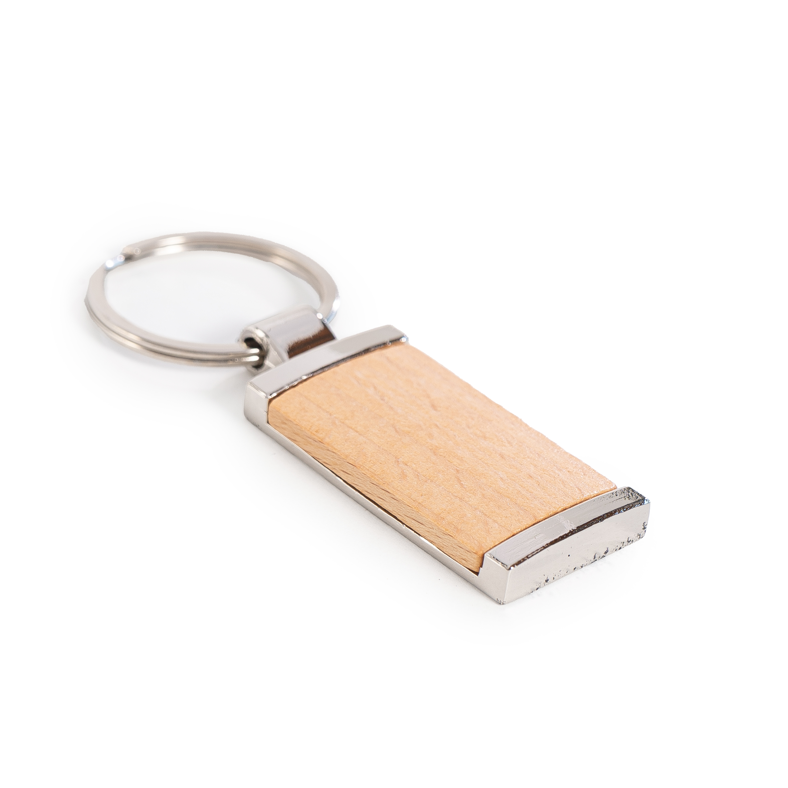 Llavero Bamboo Rectangular. Frente de bamboo dorso de metal Dimensiones: 8cm x 3cm, rectángulo bamboo 2.3cm x 3.6 cm Material: Bamboo y metal