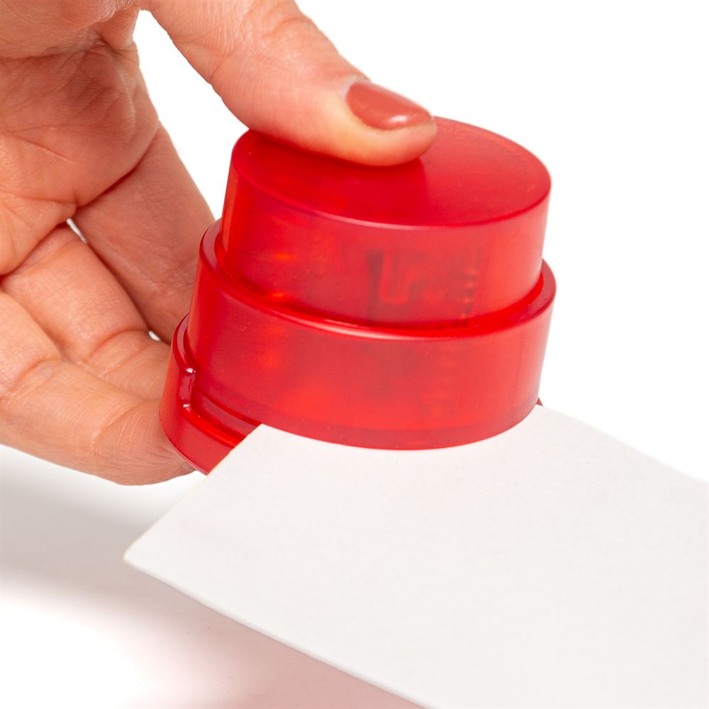 Engrapadora de papel Descripción:No utiliza ningún tipo de ganchos. Material: plástico. Dimensiones: 4,5 cm de alto, 5 cm de ancho.