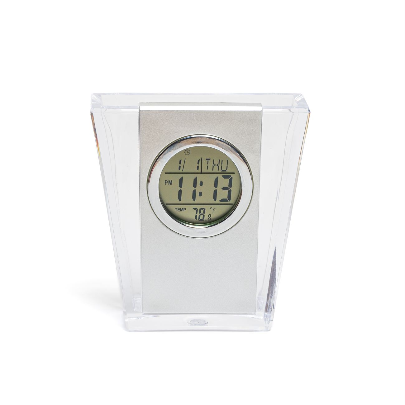 Portalápiz con hora, fecha, temperatura y alarma