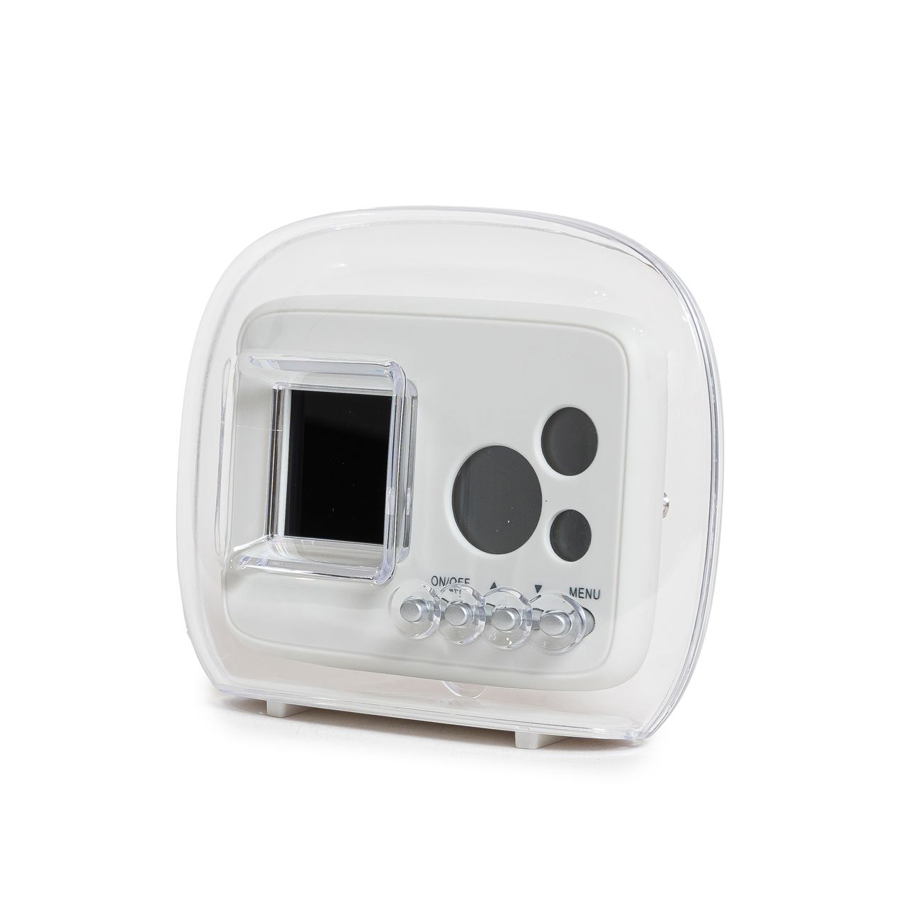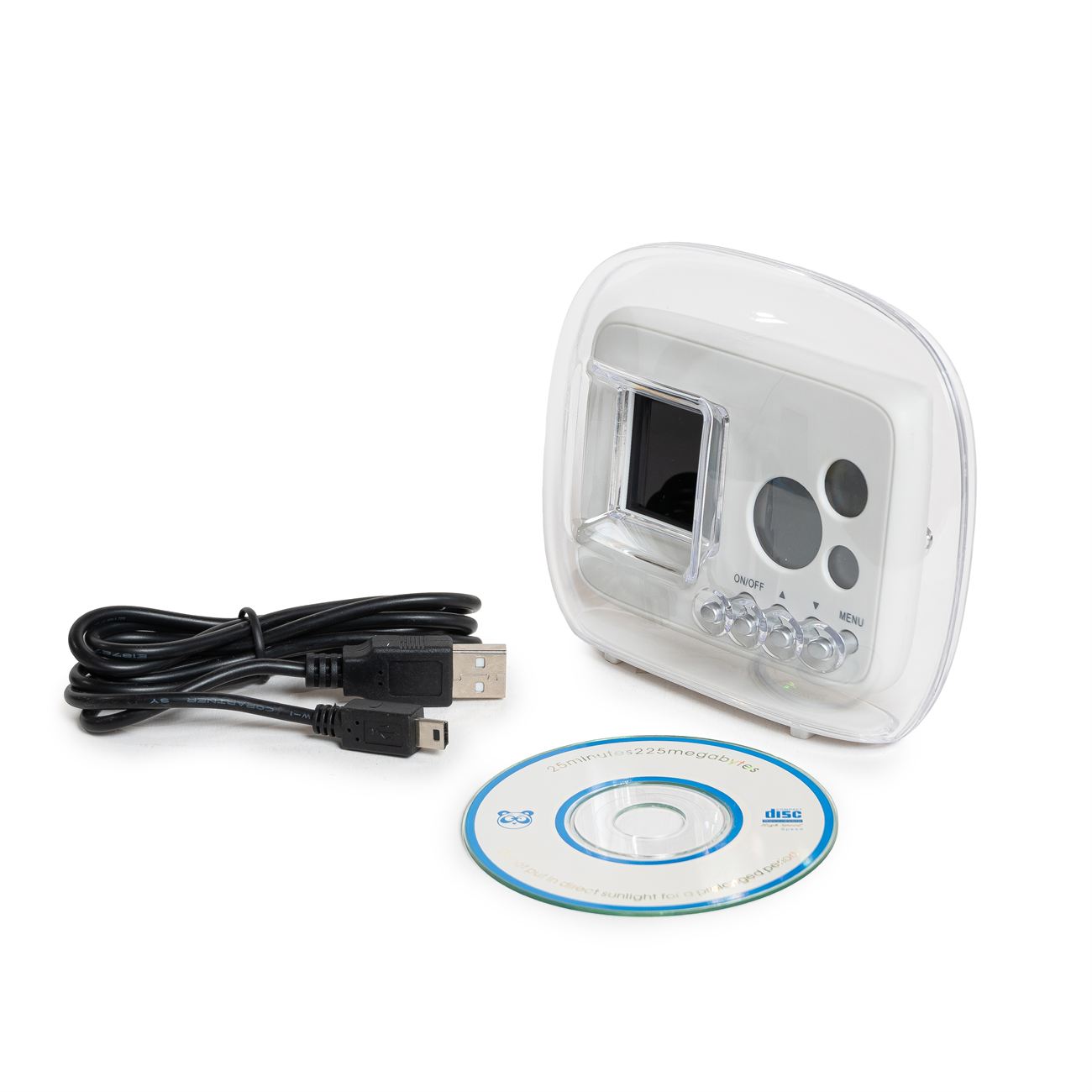 Con calendario, hora y temperatura, Alimentación del display y carga de fotos vía interfase USB, capacidad para 59 imágenes (JPEG PNG BMP GIF), 1 MB de memoria, visor de 1.5¨ 128×128 pixels, sistema operativo Windows, software incluido. Reloj/Calendario con alimentación vía 2 pilas AAA (no incluidas).