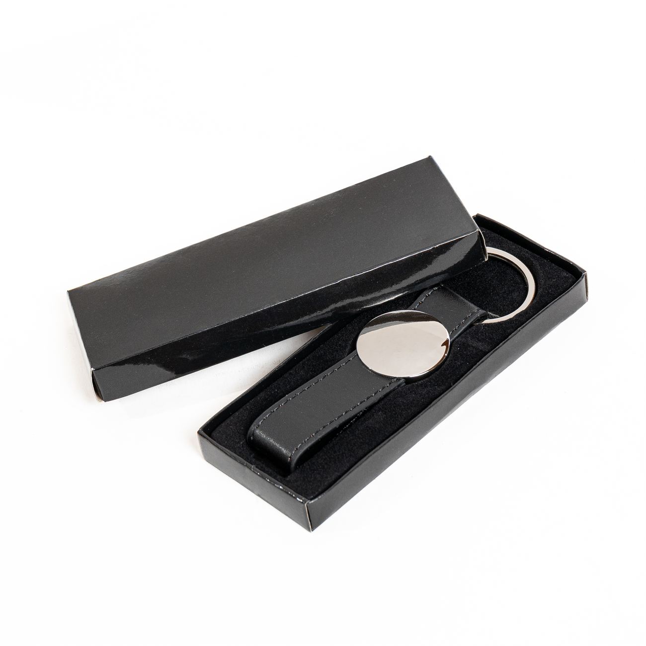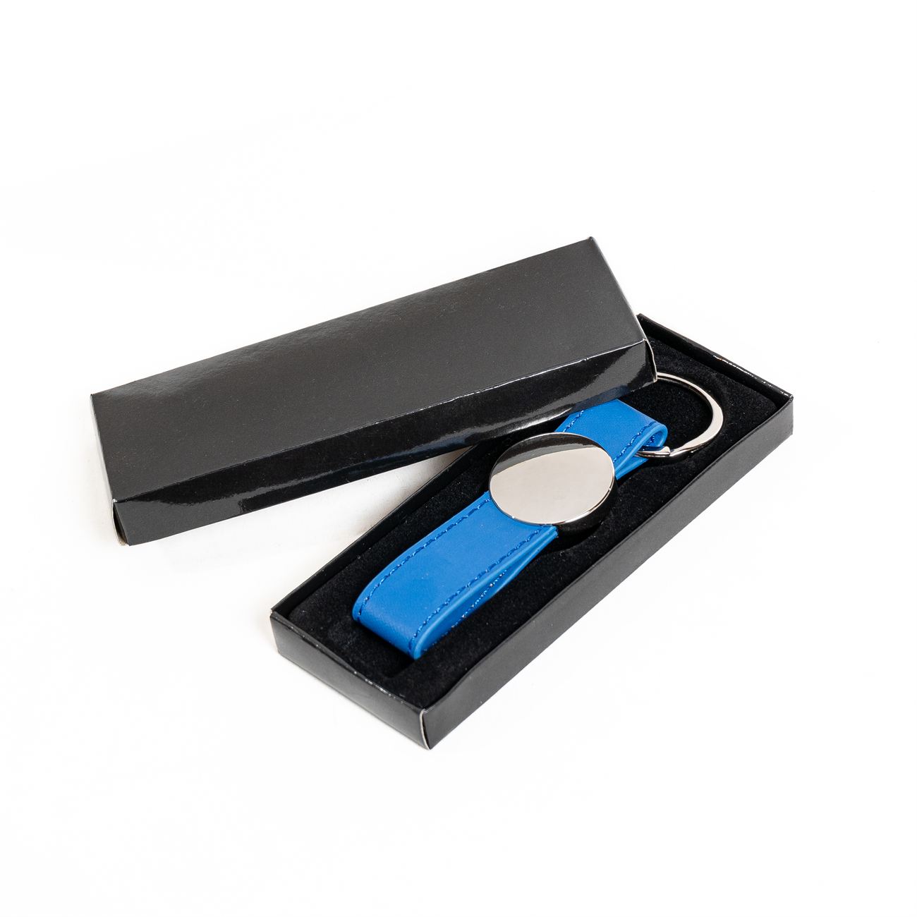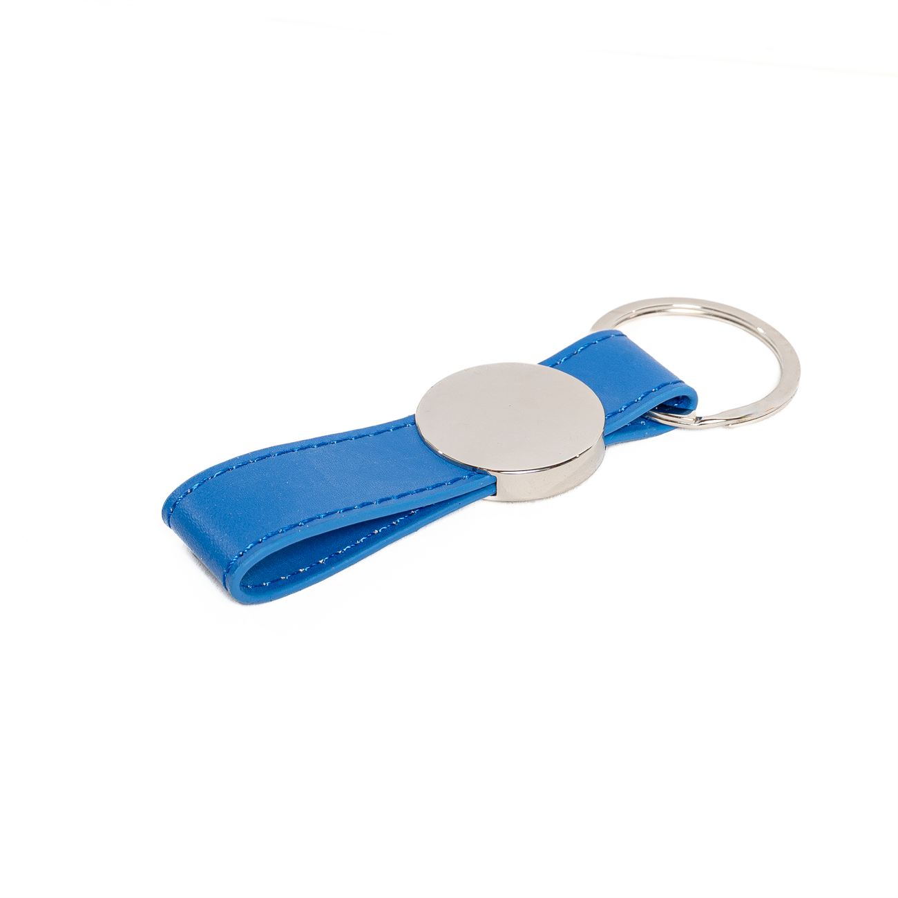 Llavero metal circular con simil cuero MATERIAL: Metal y simil cuero. MEDIDAS: 8cm x 3cm, circulo de 3cm de diámetro.