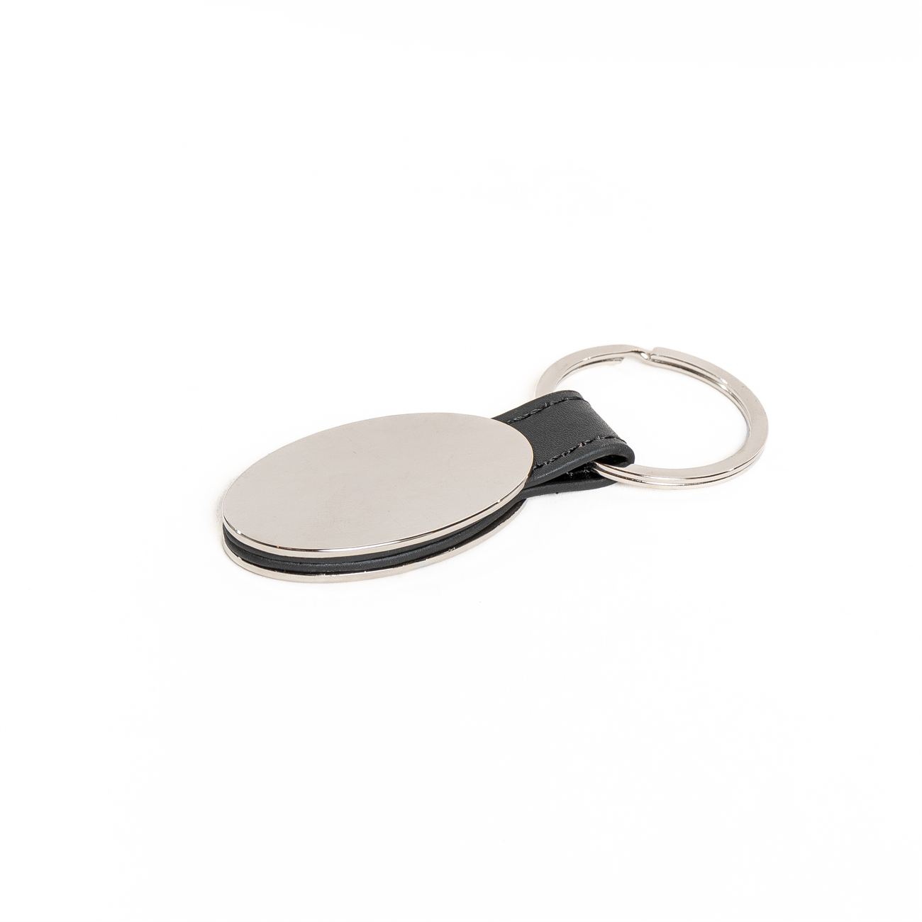 Llavero metal oval MATERIAL: Metal y simil cuero. MEDIDAS: 6cm x 2.5cm, óvalo de 4.5cm x 2.5 cm.