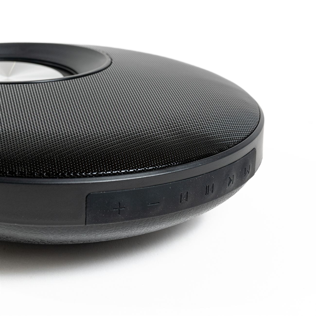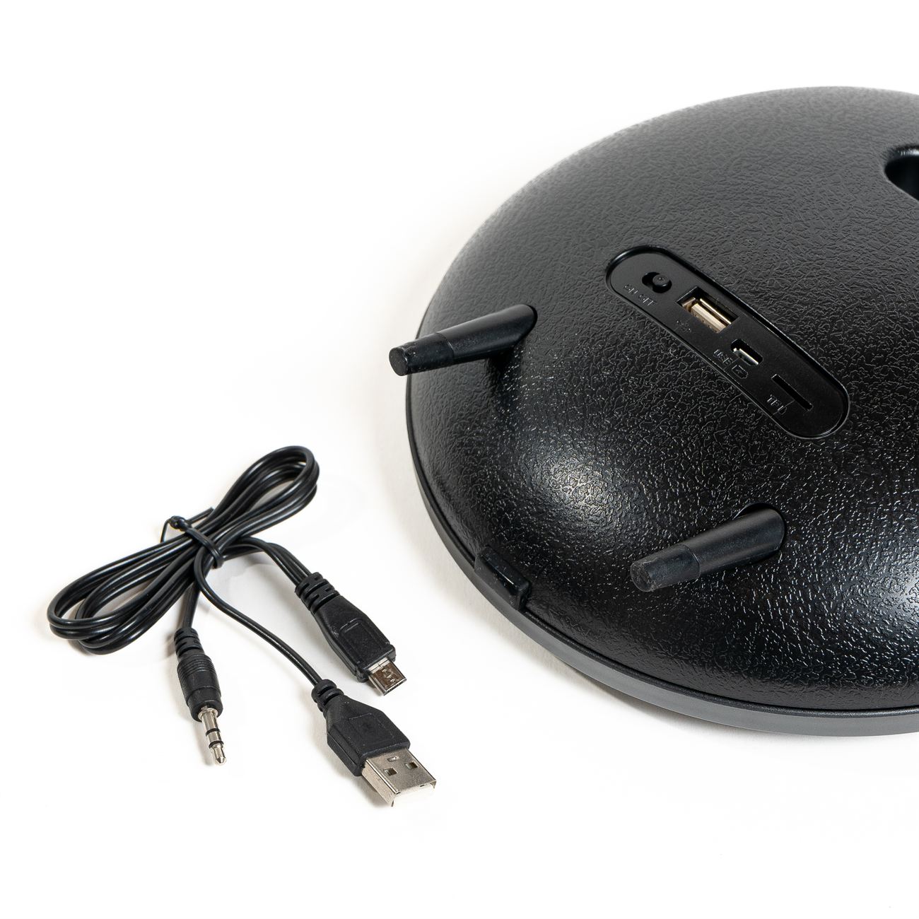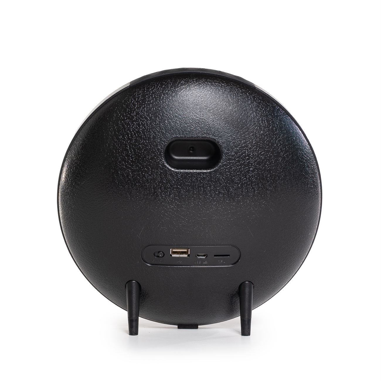 Descripción: Parlante amplificador de 5W x 2 bluetooth. Hasta diez metros de rango efectivo. Batería de litio recargable (2400 mAh)por cable USB provisto, tiempo estimado de funcionamiento 3 a 4hs aprox. Botón de encendido con indicaciones de conexión sonoras y de luz. Micrófono incorporado para función manos libres y teclas para control de volumen y selecciones. Lector de tarjeta micro SD (hasta 32G) y entrada USB para pendrives. Compatible con la mayoría de los sistemas con conexión bluetooth. Provee cable de conexión y puerto de entrada micro USB para carga. Caja contenedora en cartón negro con ilustraciones e instrucciones.