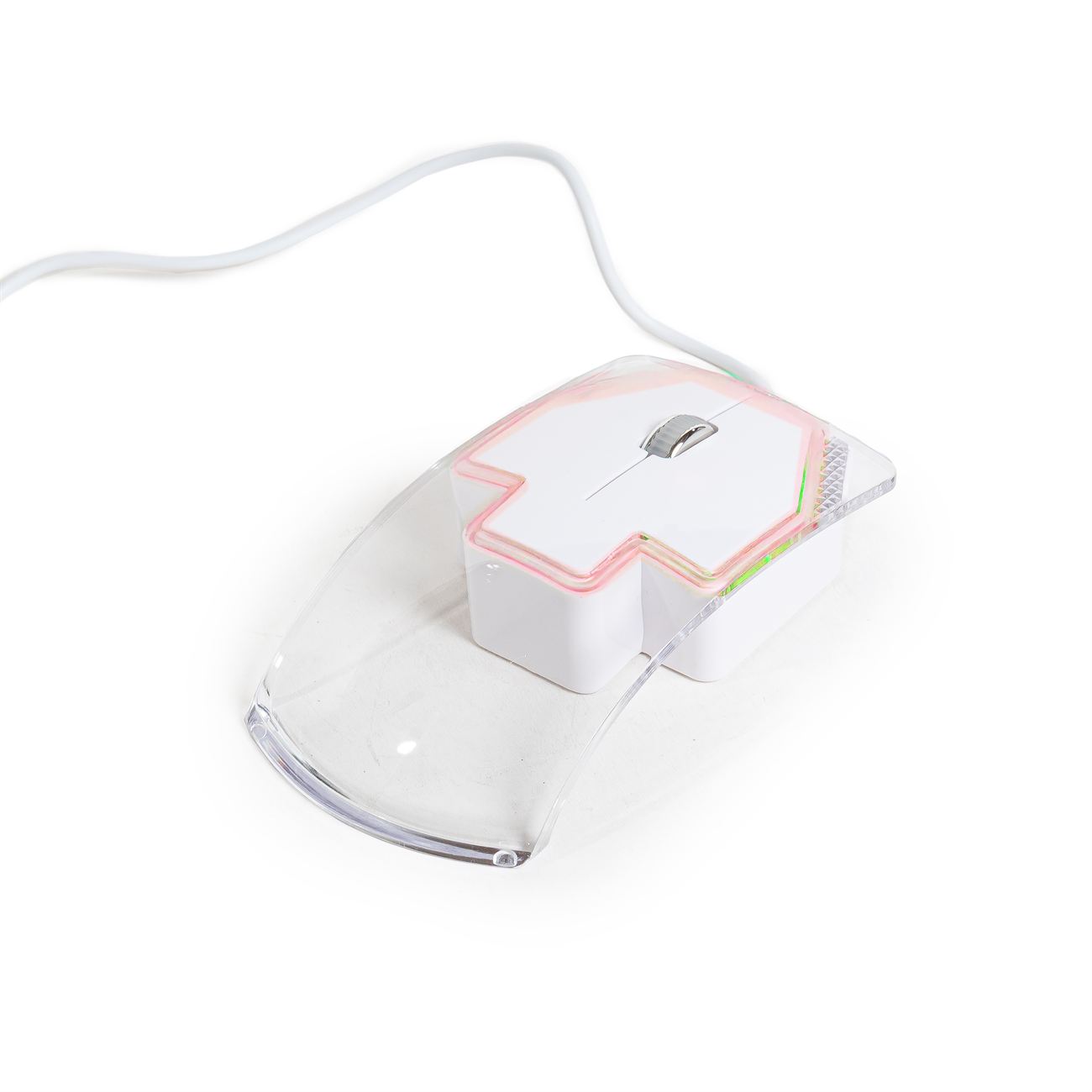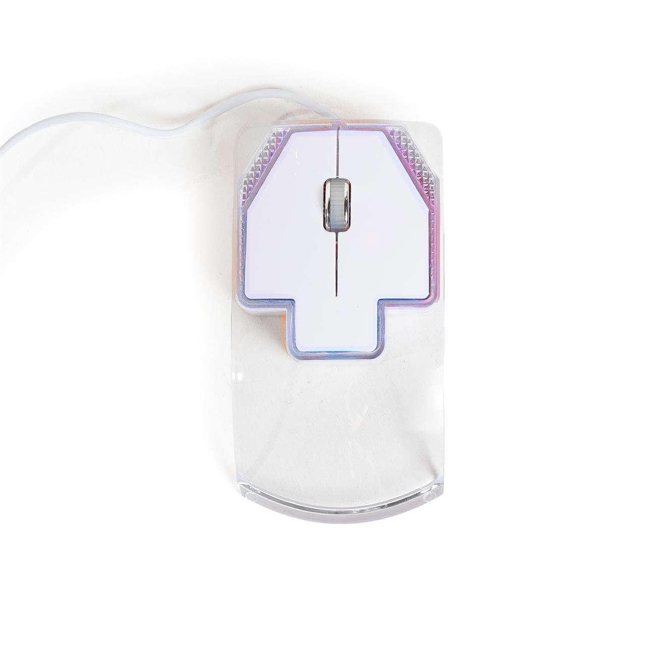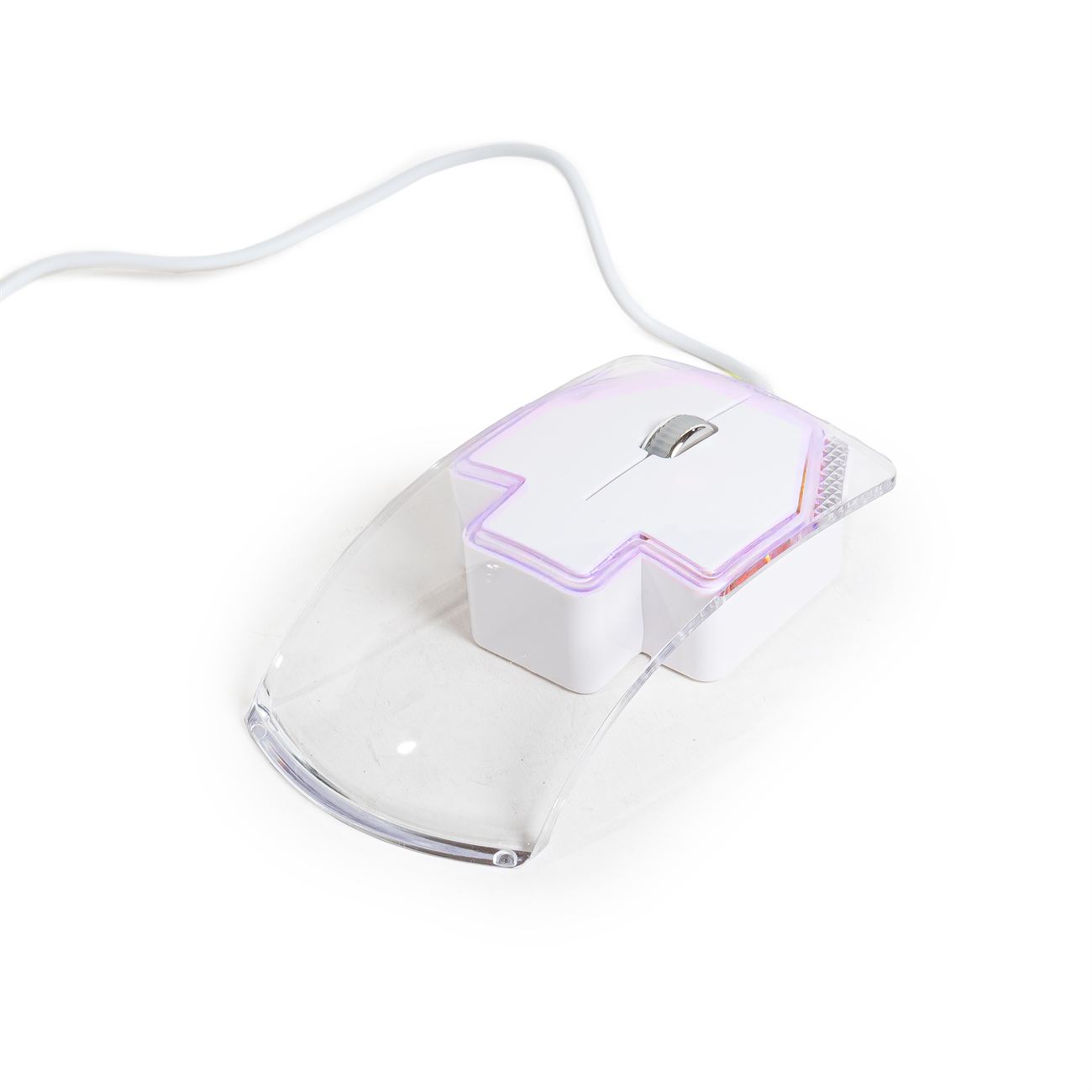Crystal Mouse con Luz Descripción: Mouse óptico, provee cable conector. Caja contenedora de cartón blanco. Dimensiones: 11.5cm x 6cm x 2cm de alto. Material: Plástico.