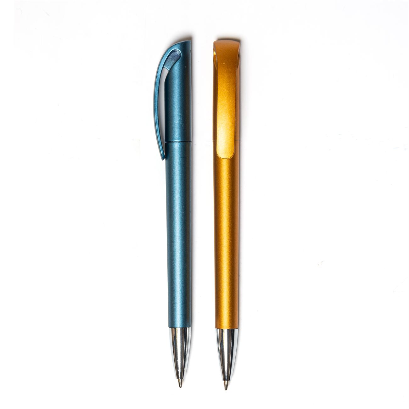 Bolígrafo medio giro puntera color metalizado.