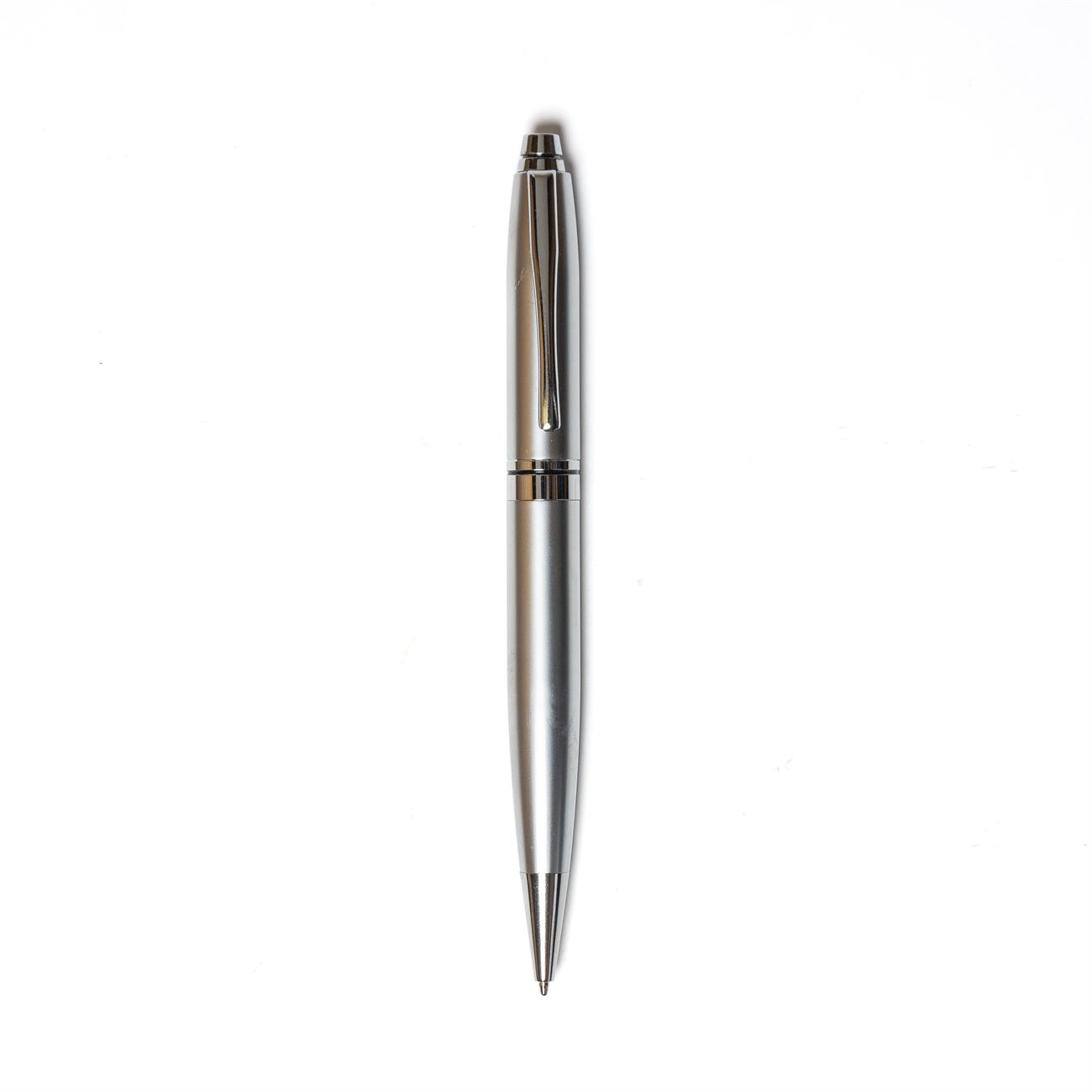 Bolígrafo metálico cromado con medio giro.
