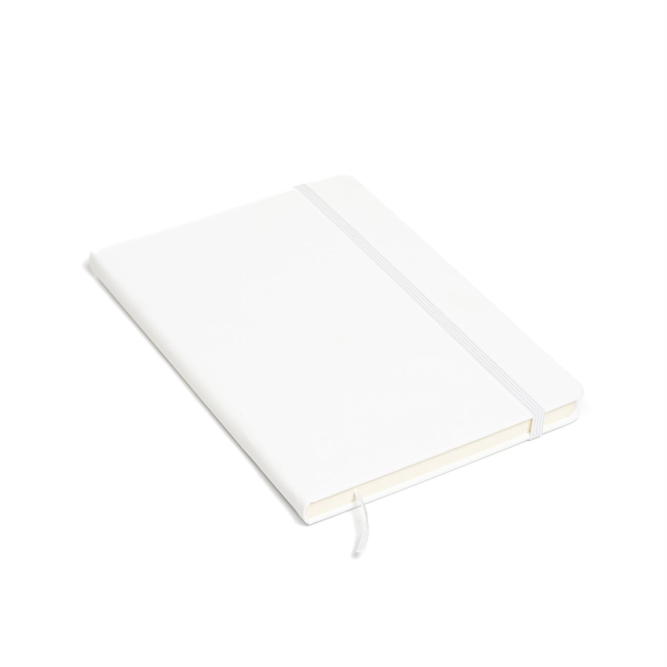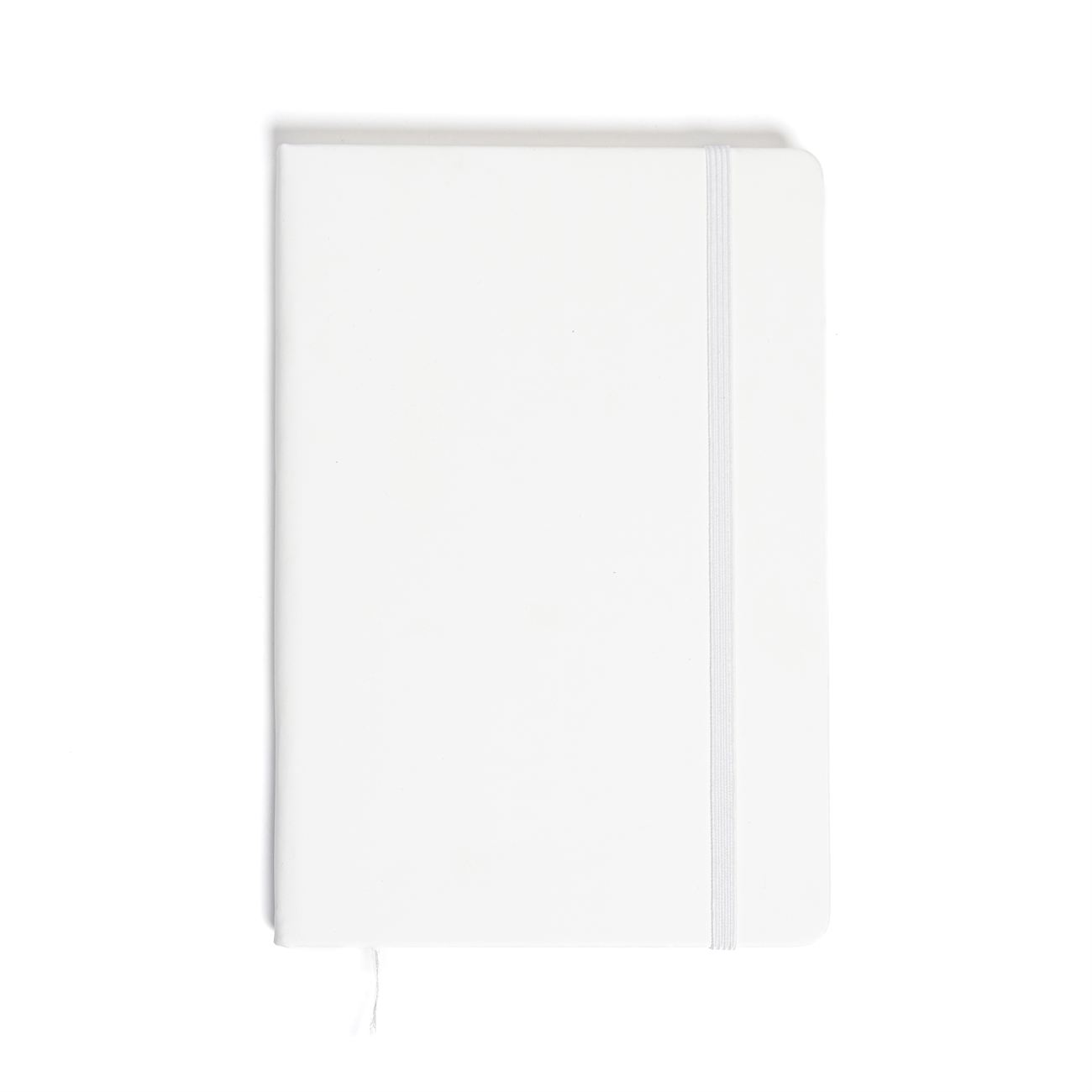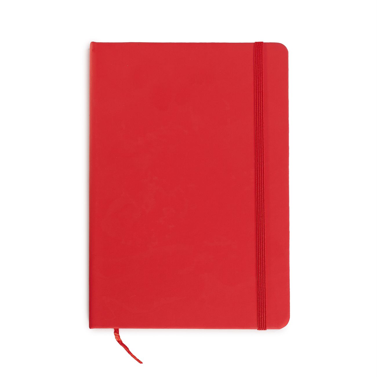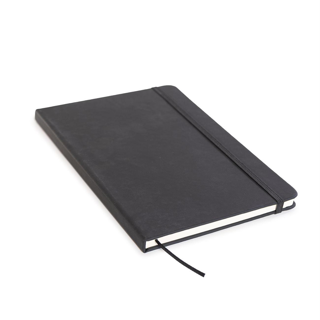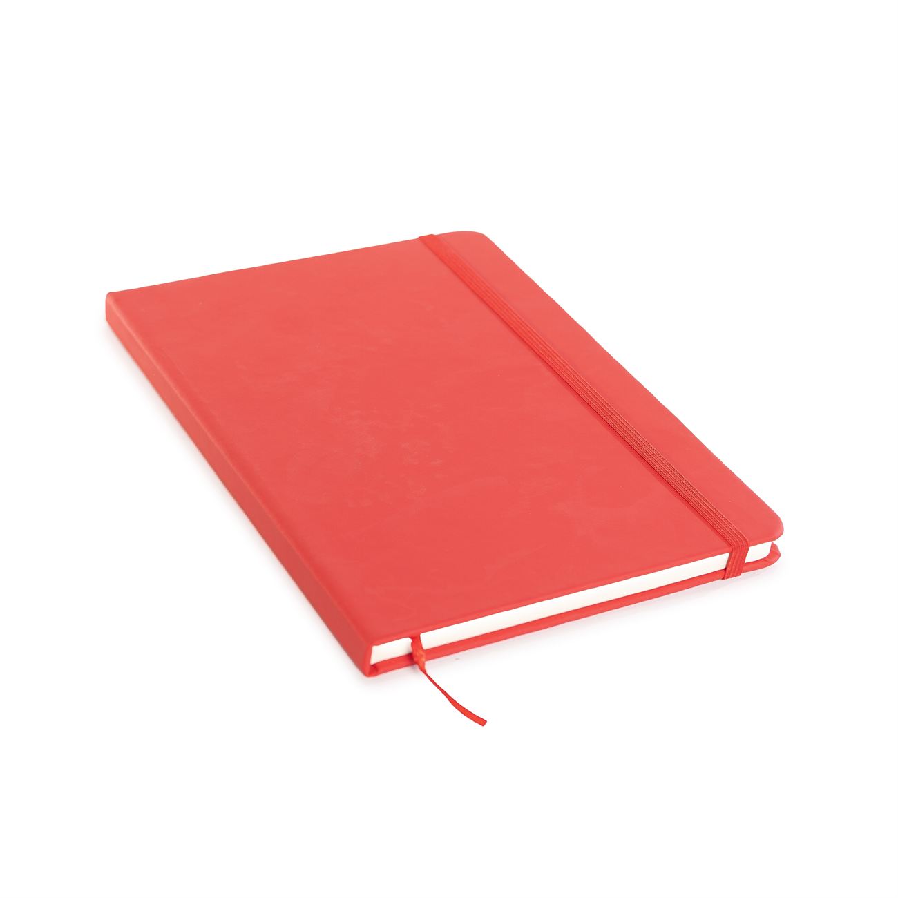 Cuaderno de tapas duras forrado en simil cuero PU. Posee 80 hojas rayadas, banda elástica de sujección al tono y cinta señaladora.