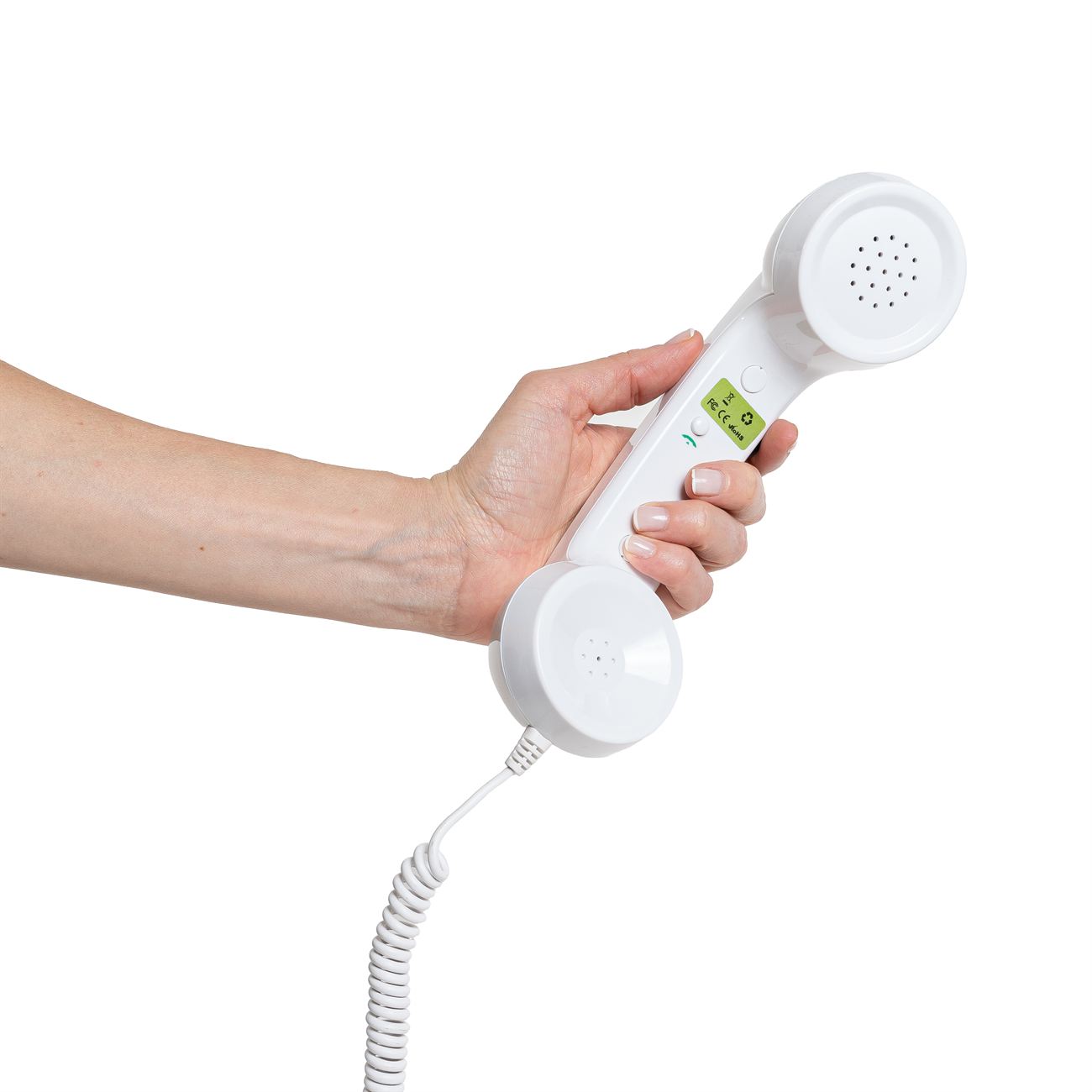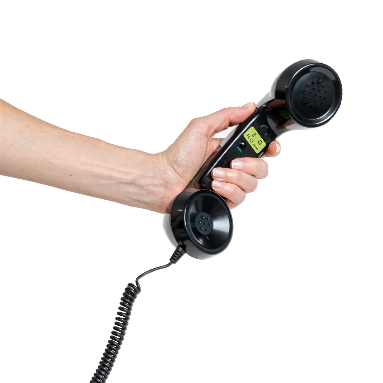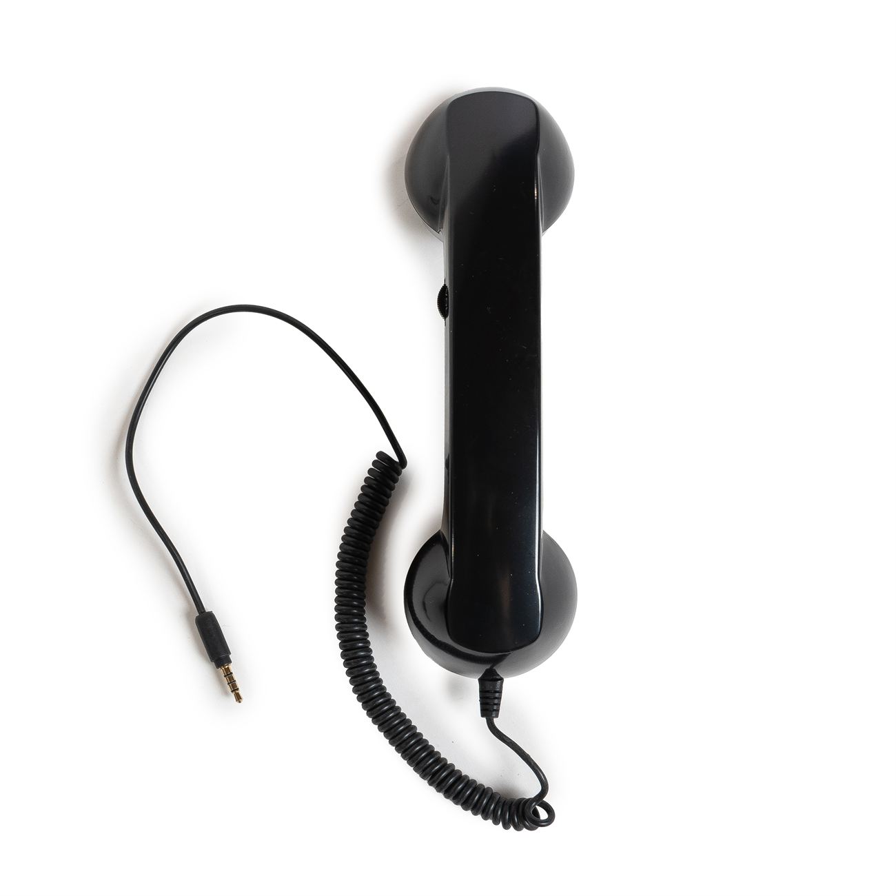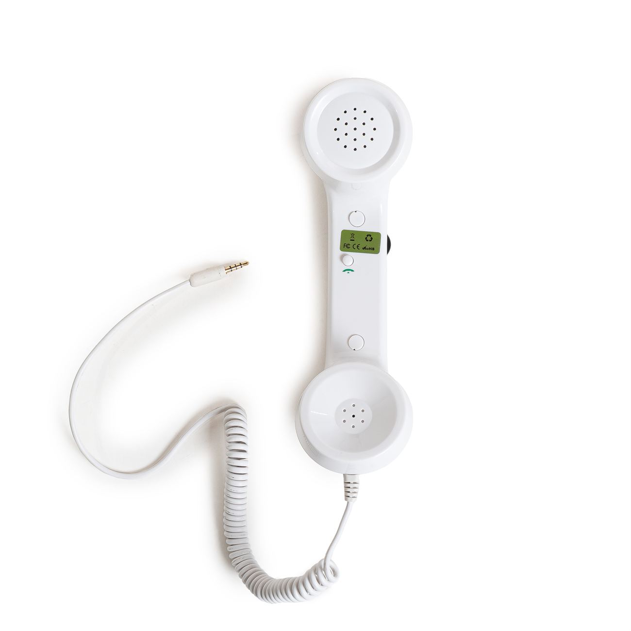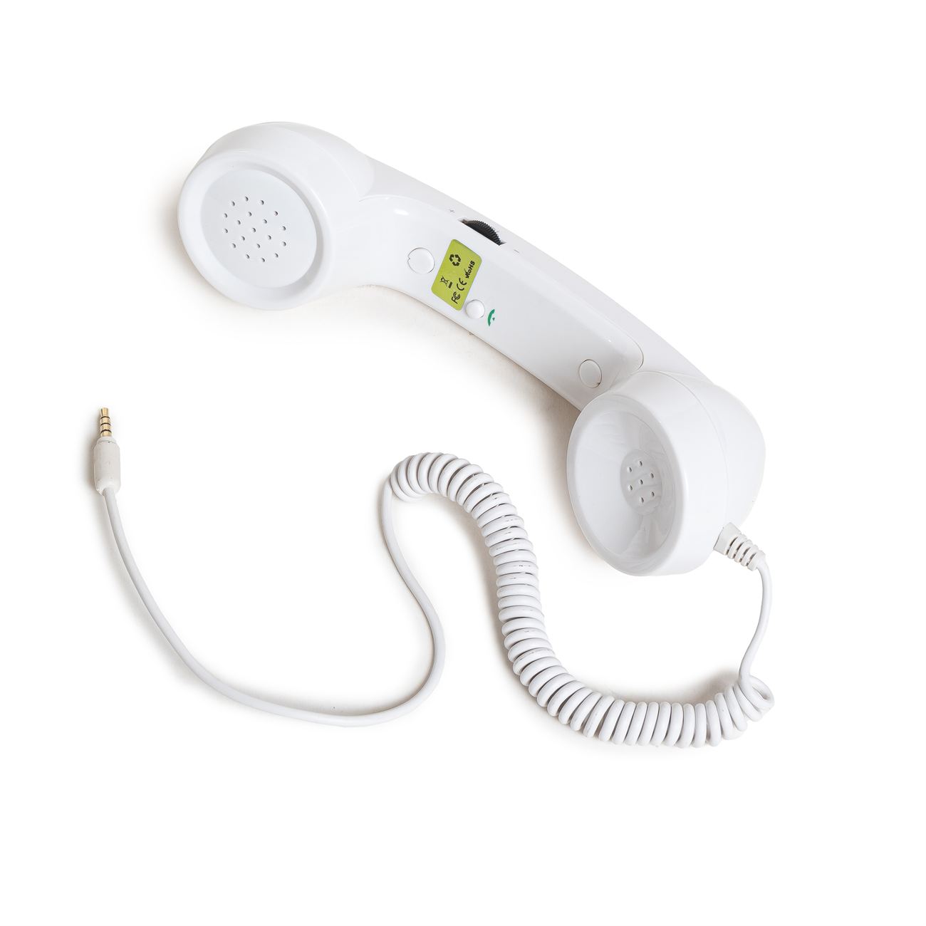 Descripción: Auricular tipo teléfono vintage. Se puede conectar a todo tipo de celular. Trae botón de atención de llamada y corte, regulador de volumen. Estuche de cartón con ventana. Material:Plástico. Medidas: 20cm x 5cm.