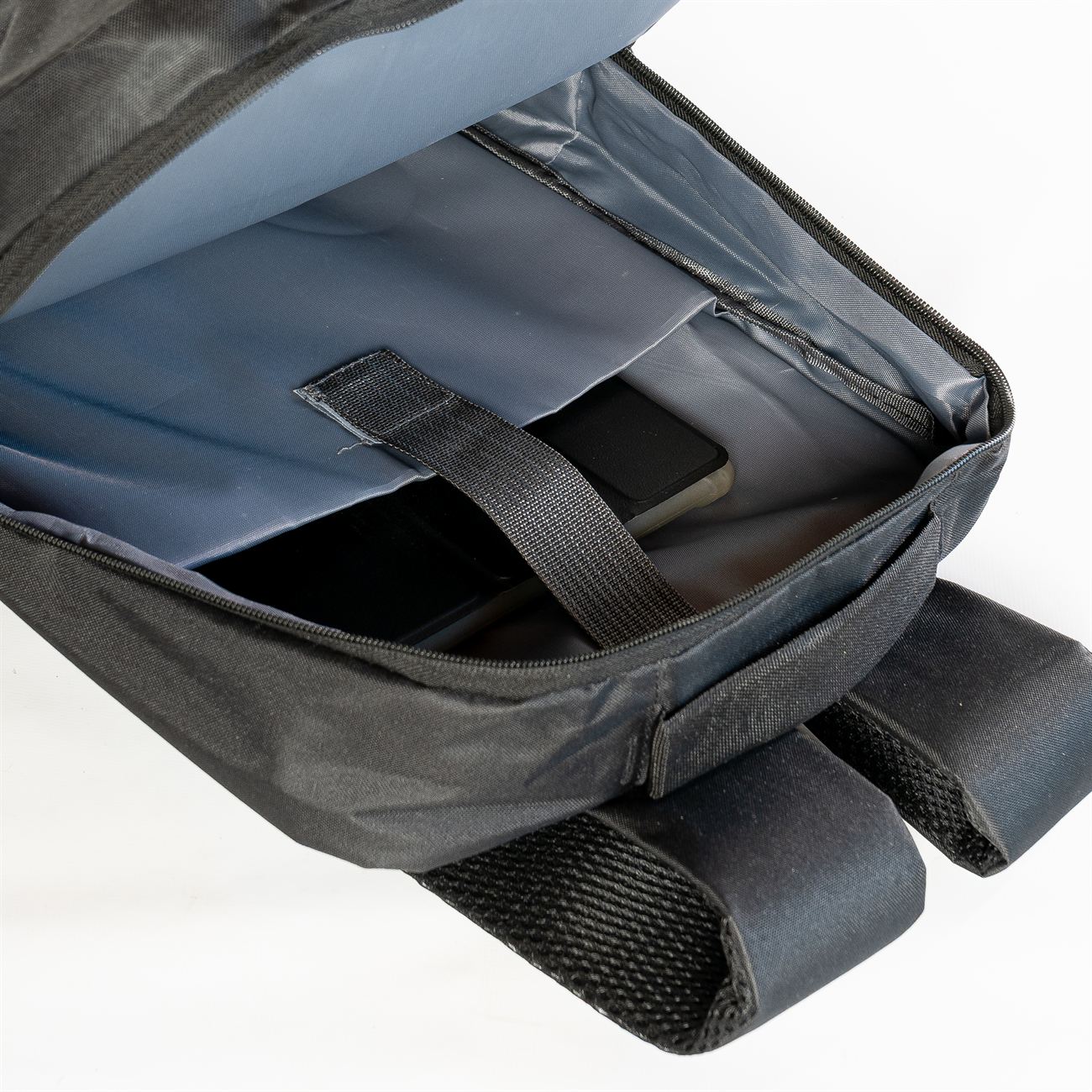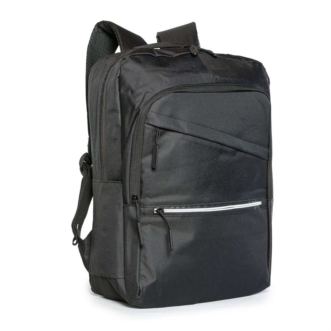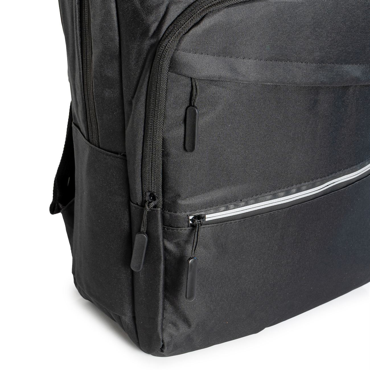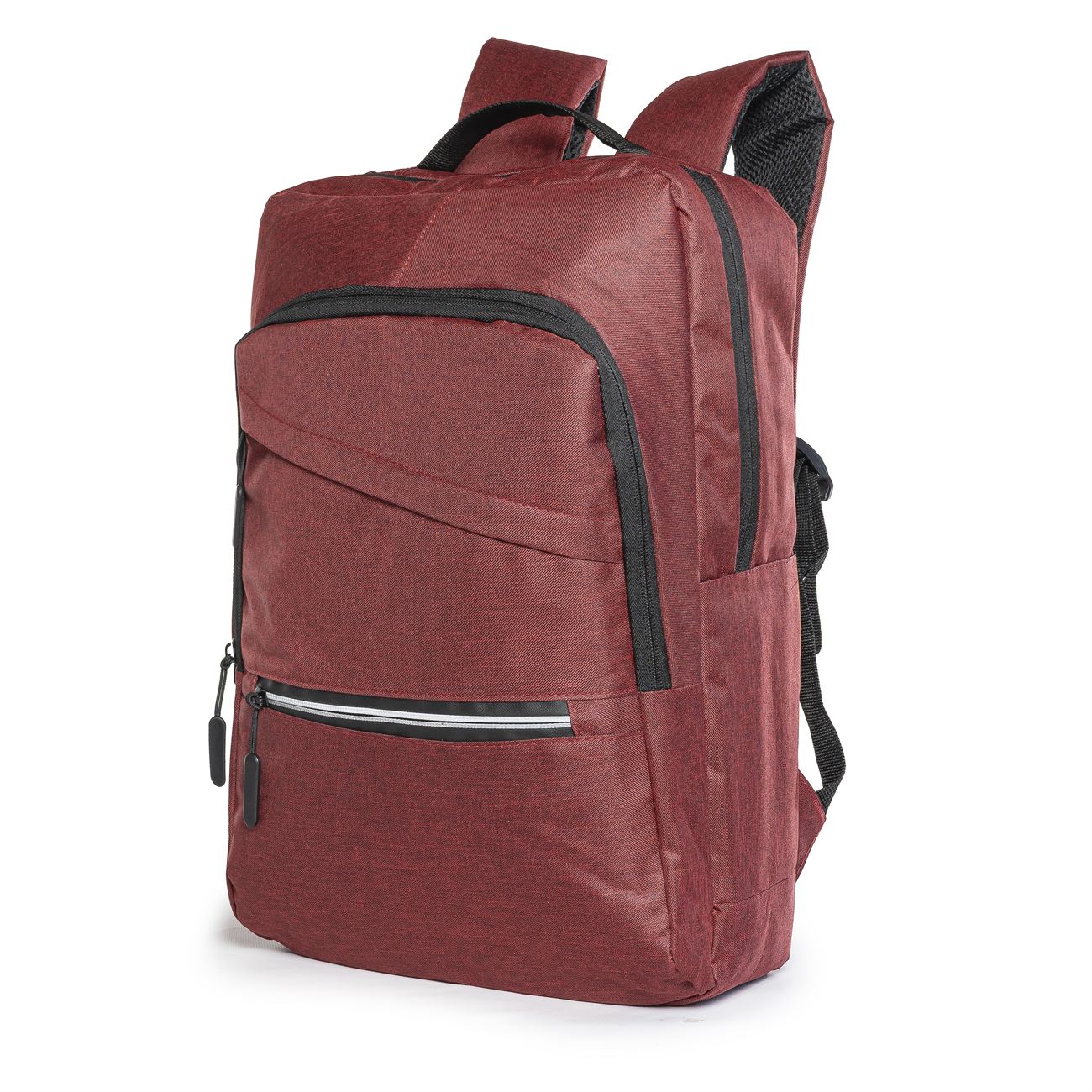 DESCRIPCIÓN: Mochila porta notebook. Presenta dos bolsillos en el frente con cierre, uno con detalle reflectivo. Un compartimiento con cierre más aplio y un compartimiento principal con cierre doble que contiene sobre el sector de la espalda el bolsillo porta notebook con sujetador con velcro con capacidad para introducir una notebook de hasta 17′. Salida externa USB con cable para conexión interna. Bolsillo en un lateral. Manija de sujeción superior. Correas acolchadas ajustables.