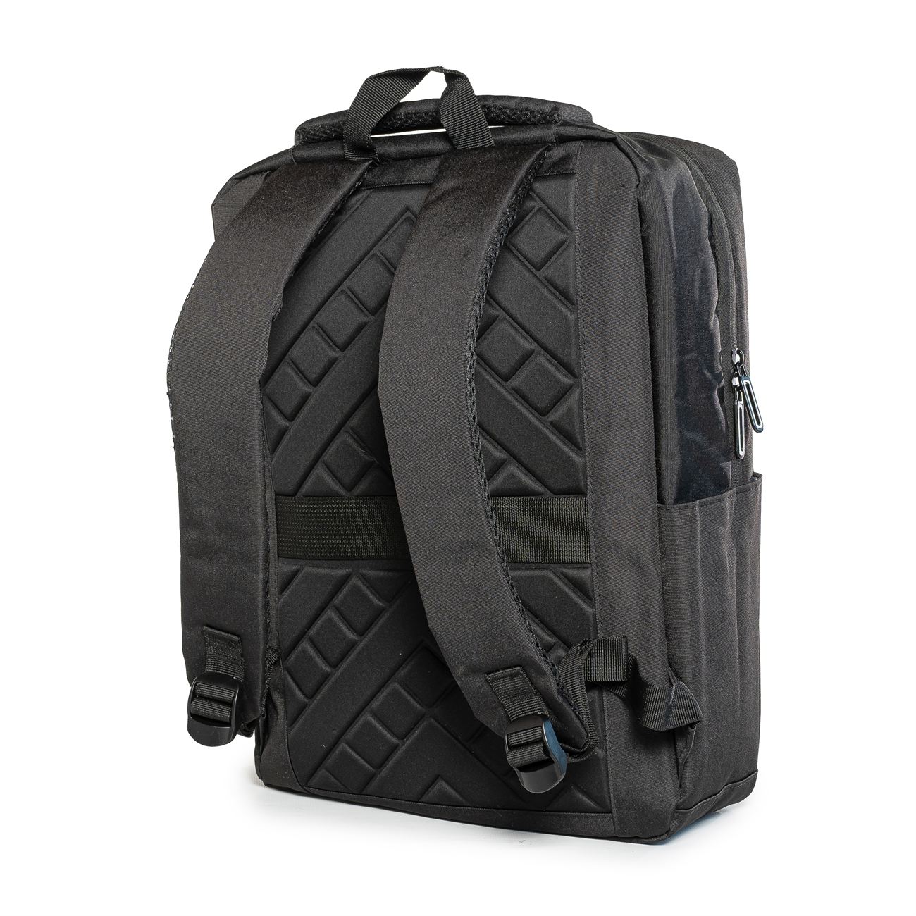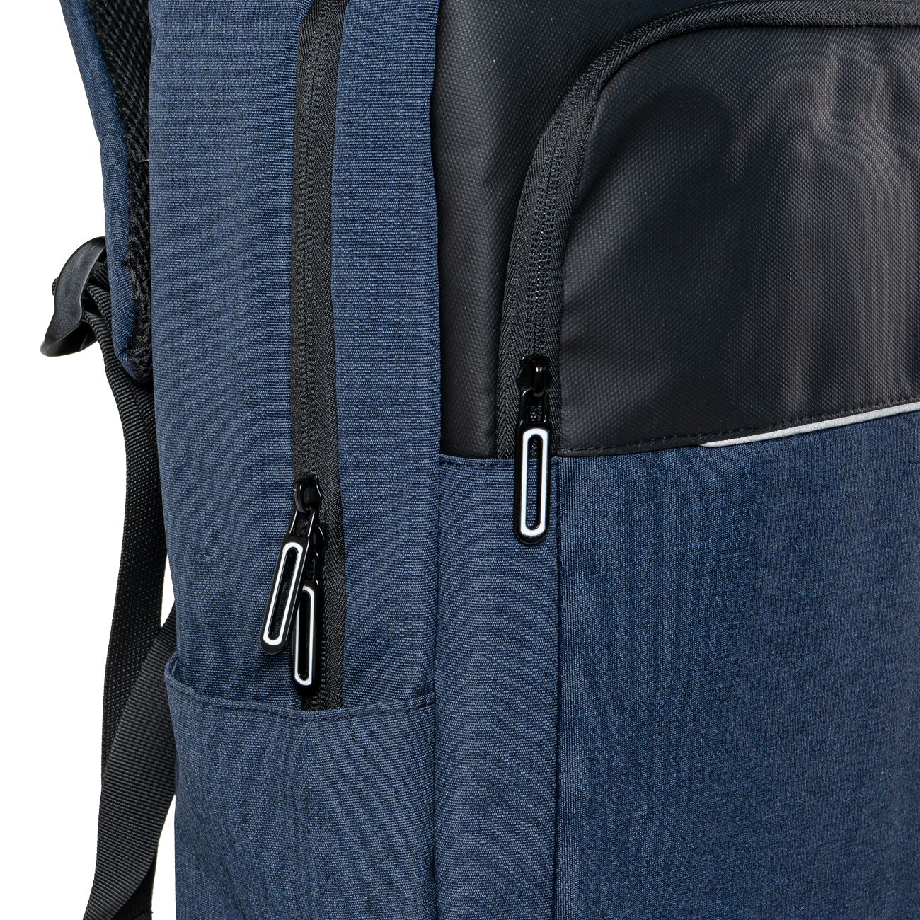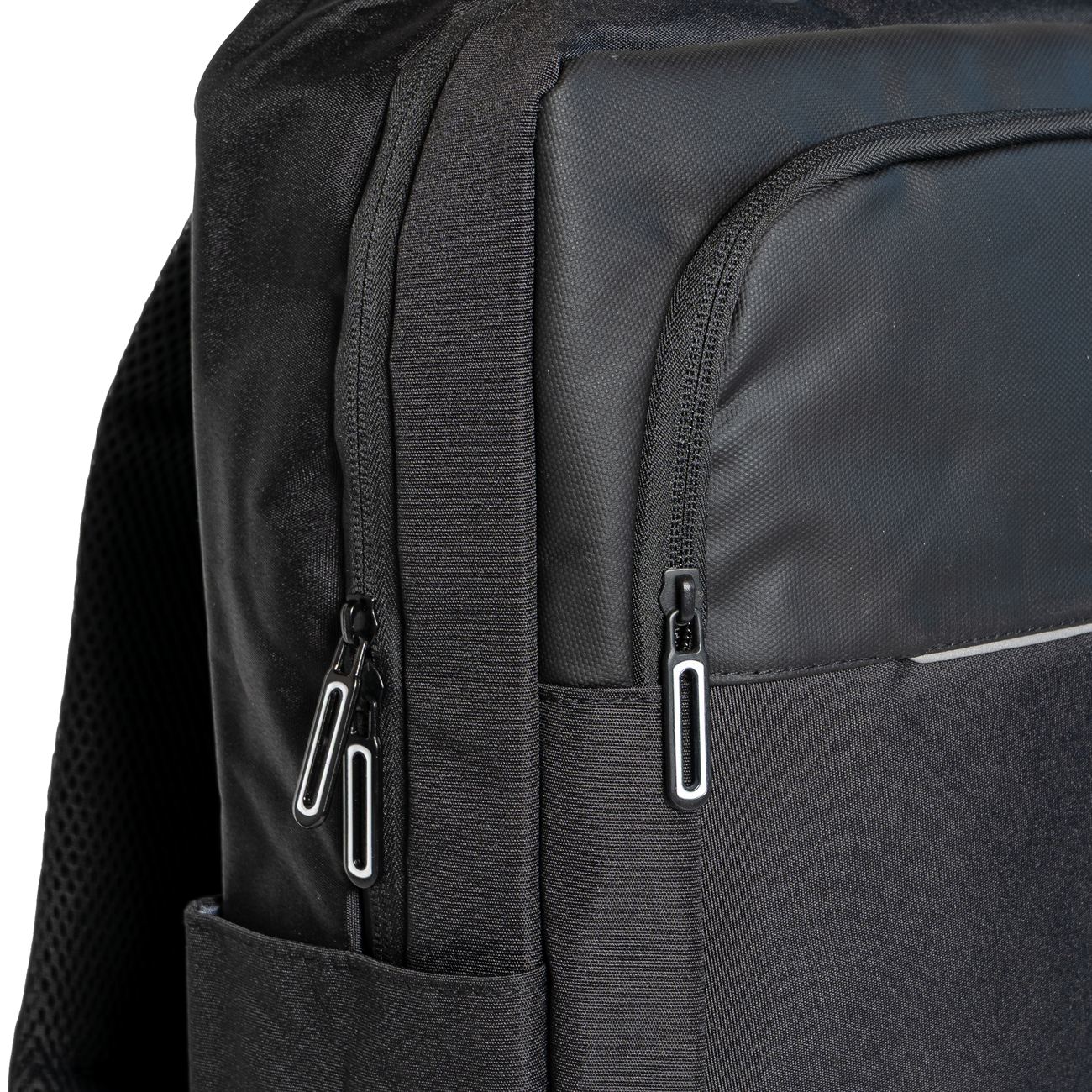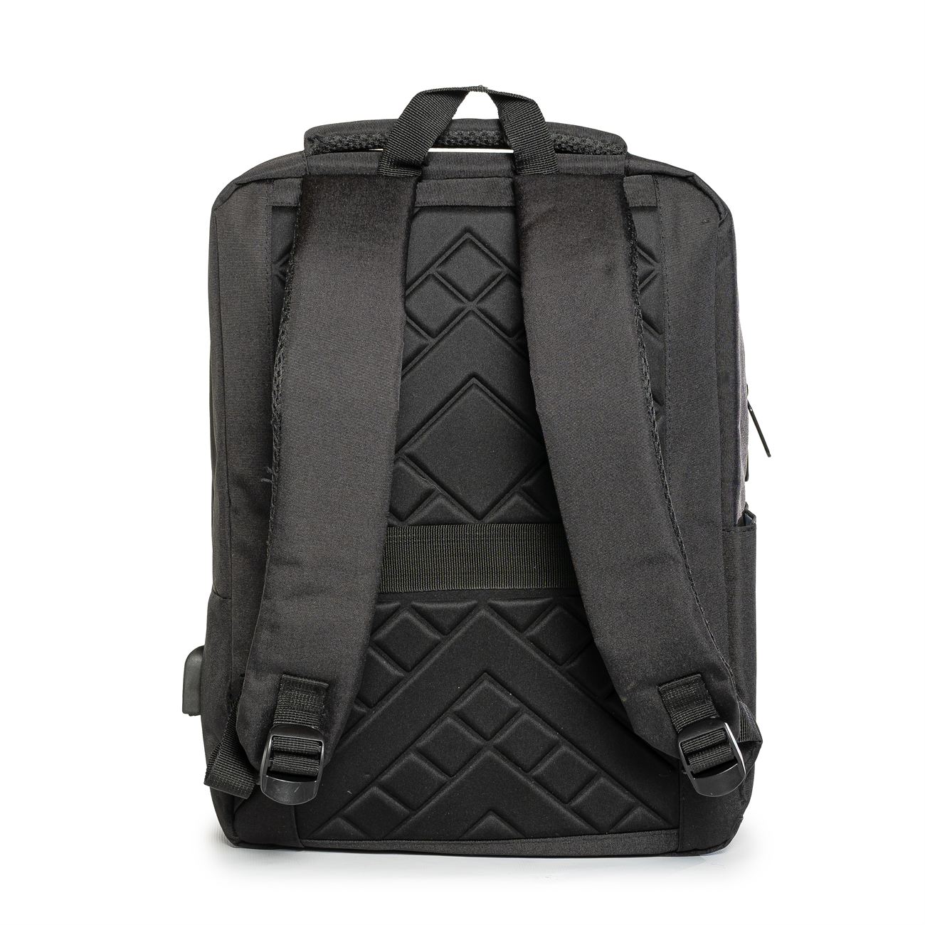 DESCRIPCIÓN: Mochila porta notebook. Presenta un bolsillo vertical en el frente con cierre. Franja superior en color negro. Un compartimiento frontal con un cierre. Compartimiento principal con cierre que contiene sobre el sector de la espalda el bolsillo porta notebook con sujetador con velcro con capacidad para introducir una notebook de hasta 16,5′. Hacia el frente trae dos bolsillos porta objetos. Interior forrado y acolchado. Respaldar reforzado con cinta para carry on. Salida externa USB con cable para conexión interna. Bolsillo en un lateral. Manija de sujeción superior reforzada y gancho para colgar. Correas acolchadas ajustables.