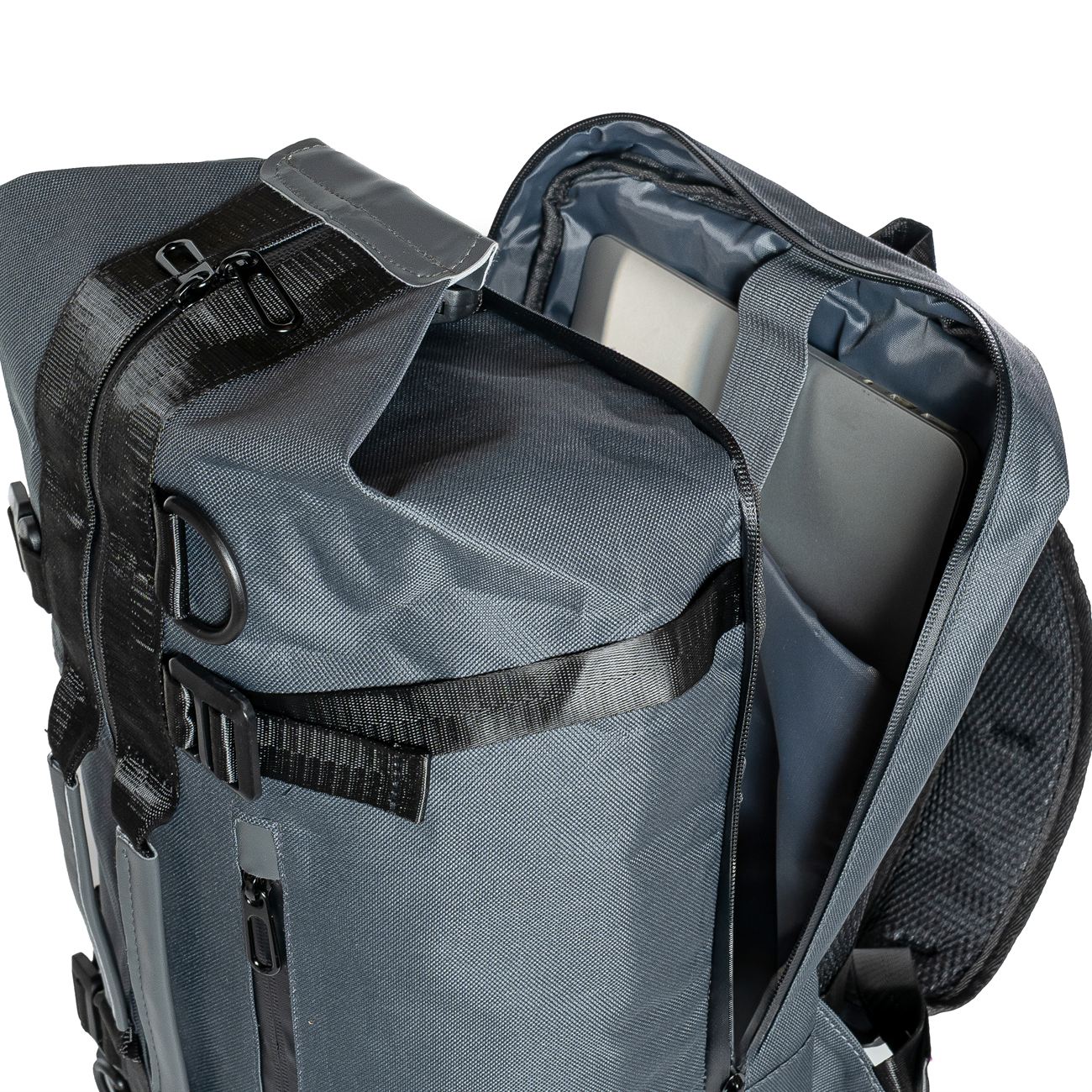 Bolso con correas tipo mochila, porta notebook. Medidas: Sector Mochila 28cm de ancho x 40cm de largo x 7cm de alto Bolso 28cm de ancho x 40cm de largo x 19cm de alto