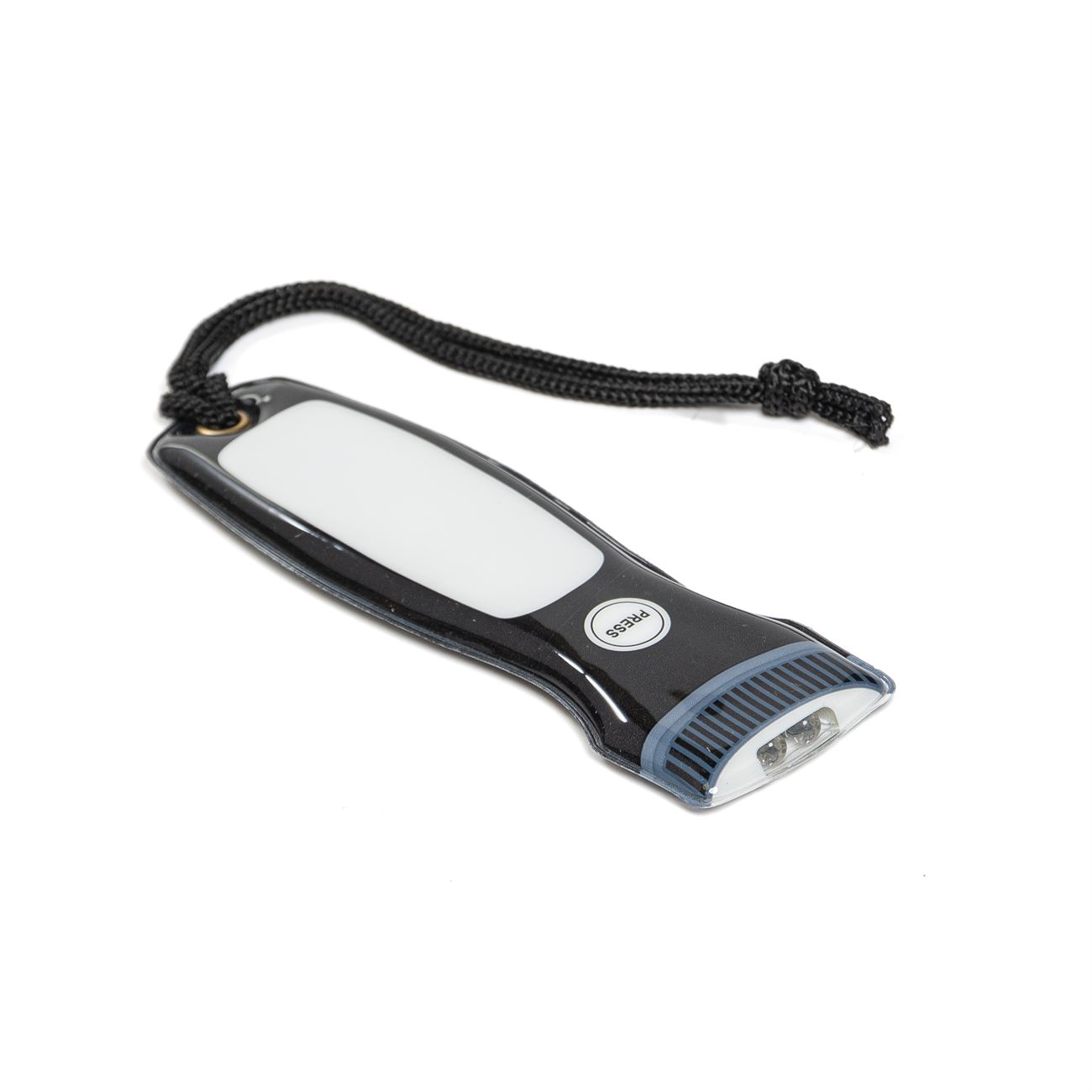 Linterna Imantada Descripción: Linterna con luz a presión, doble led, imantada para fijar en cualquier superficie metálica. Provee una cinta colgante. Dimensiones: 12.5cm x 4cm, ancho 0.5cm. Material: Plástico PVC.