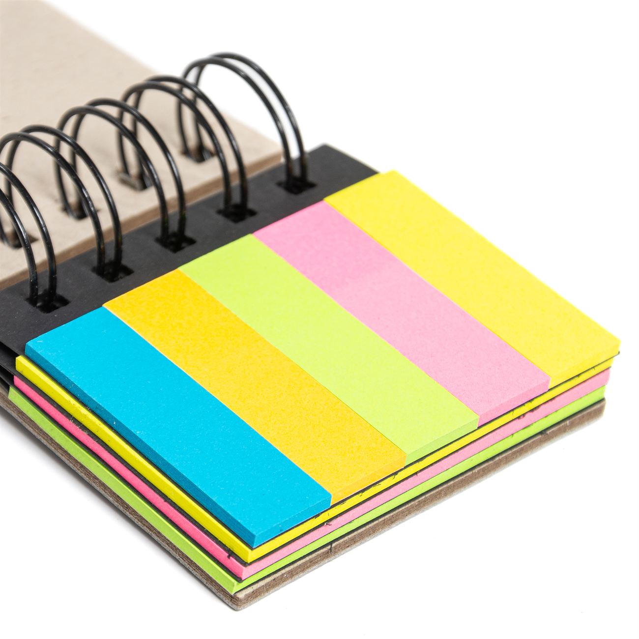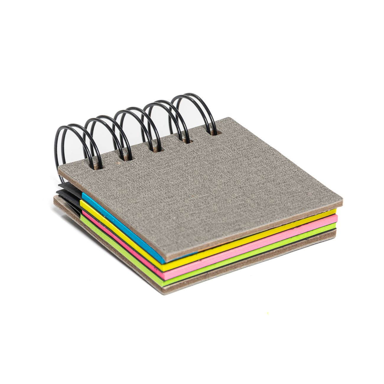 Memo Pad Descripción: Block anillado contenedor de memos adhesivos, posee 3 blocks con 25 notas de 7,5*4,5cm y uno dividido en 5 chicos. Dimensiones: 7,5*7.5*1.5cm de alto. Material: Papel y cartón recubierto de PVC.