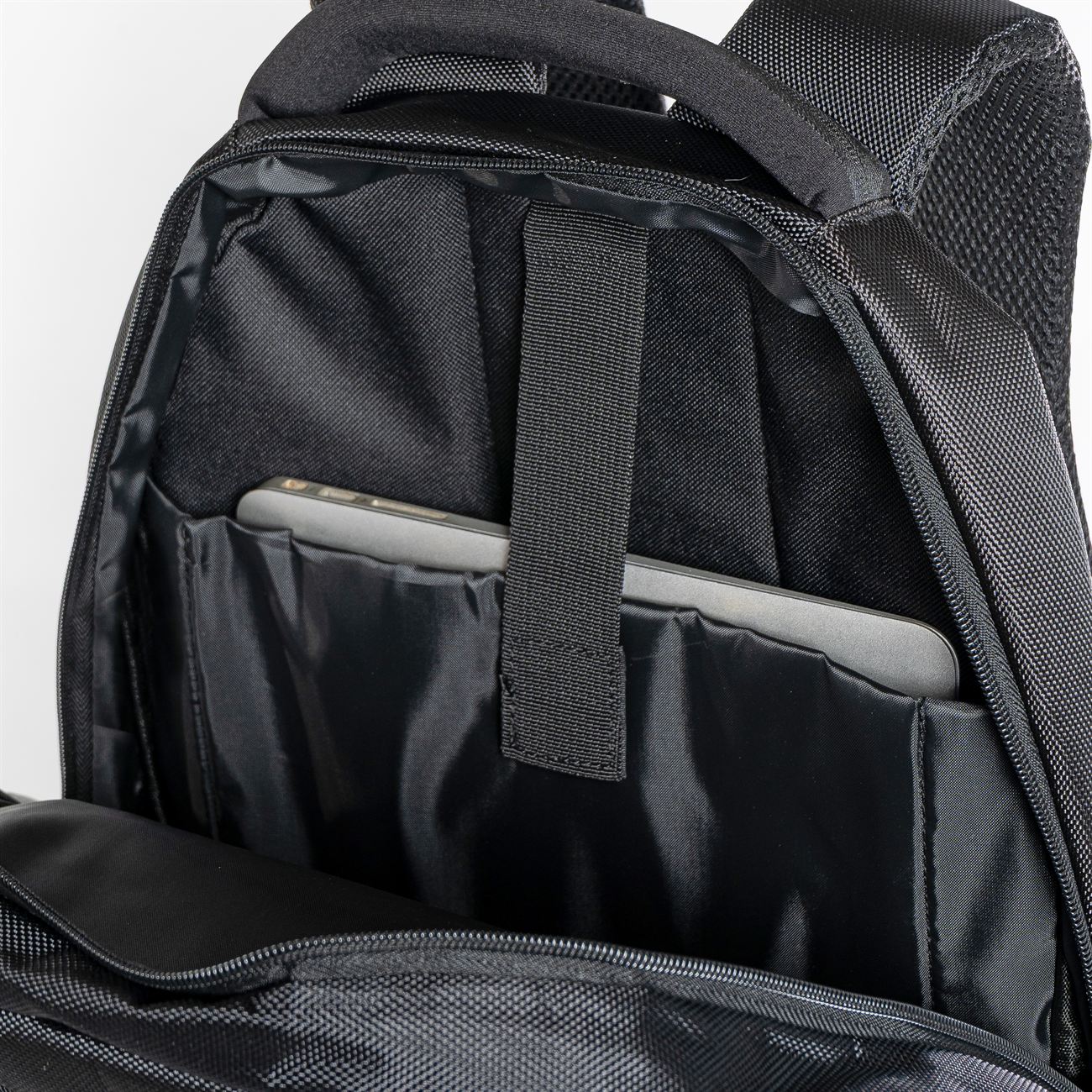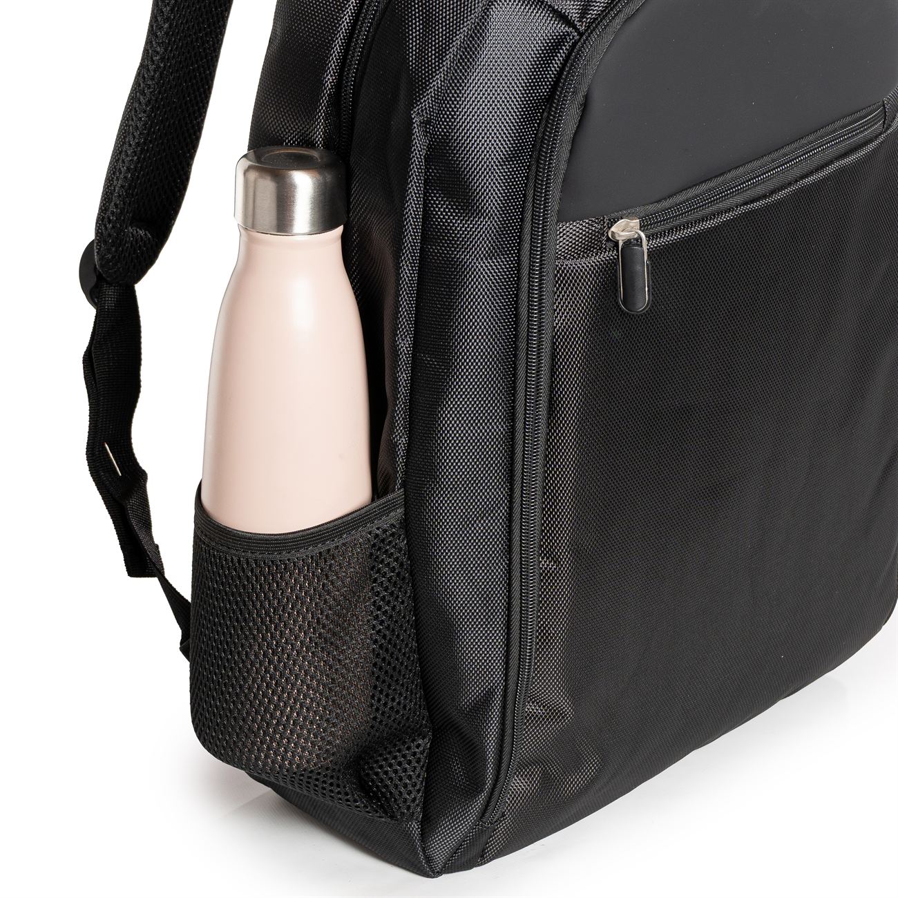 Mochila porta Notebook súper resistente e impermeable. Presenta un bolsillo en el frente con detalle en la parte superior en PU. Luego dos compartimientos, el primero con un cierre doble que permite abrir toda la parte frontal, el segundo y principal, también con cierre doble que contiene sobre el sector de la espalda el bolsillo porta notebook con sujetador con velcro. Interior forrado y acolchado. Posee dos bolsillos laterales en ripstop. Manija acolchada. Correas acolchadas ajustables. Soporte de espalda anatómico acolchado y reforzado.
