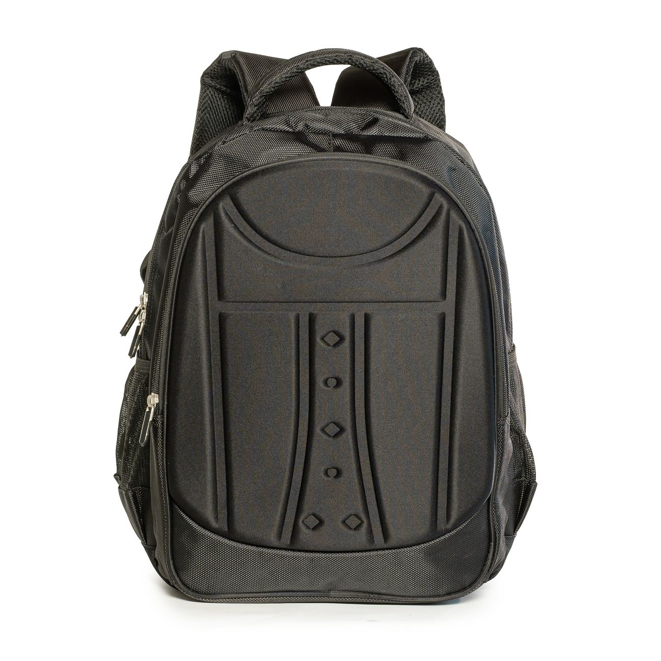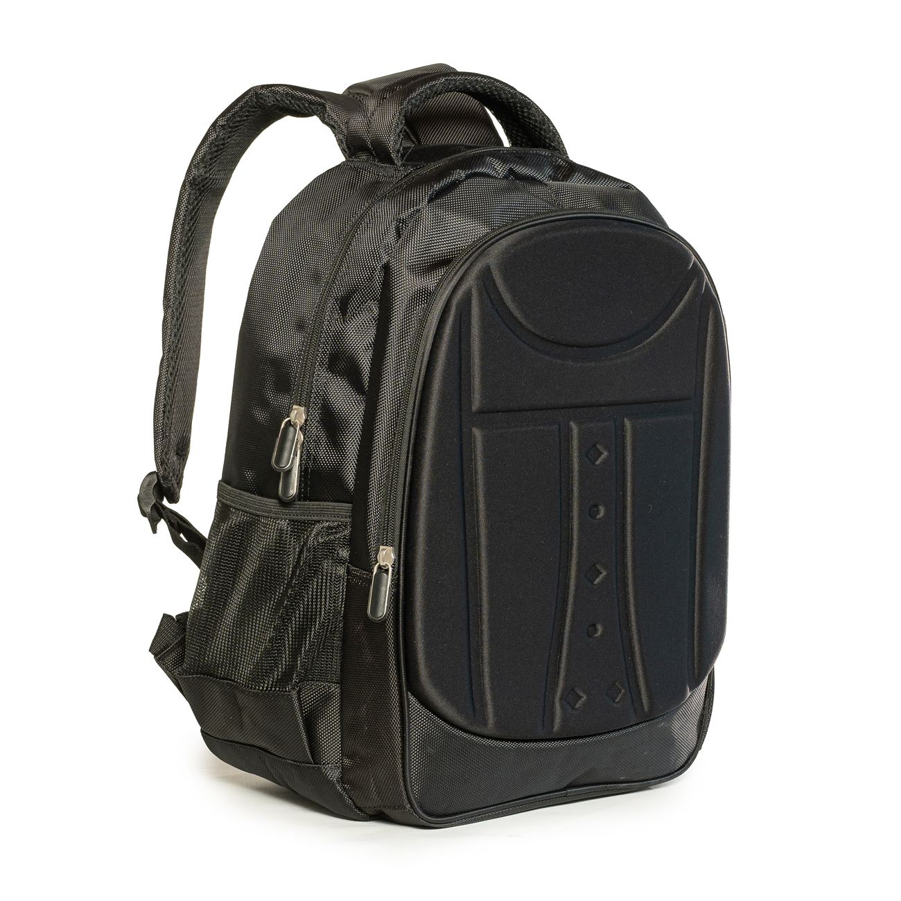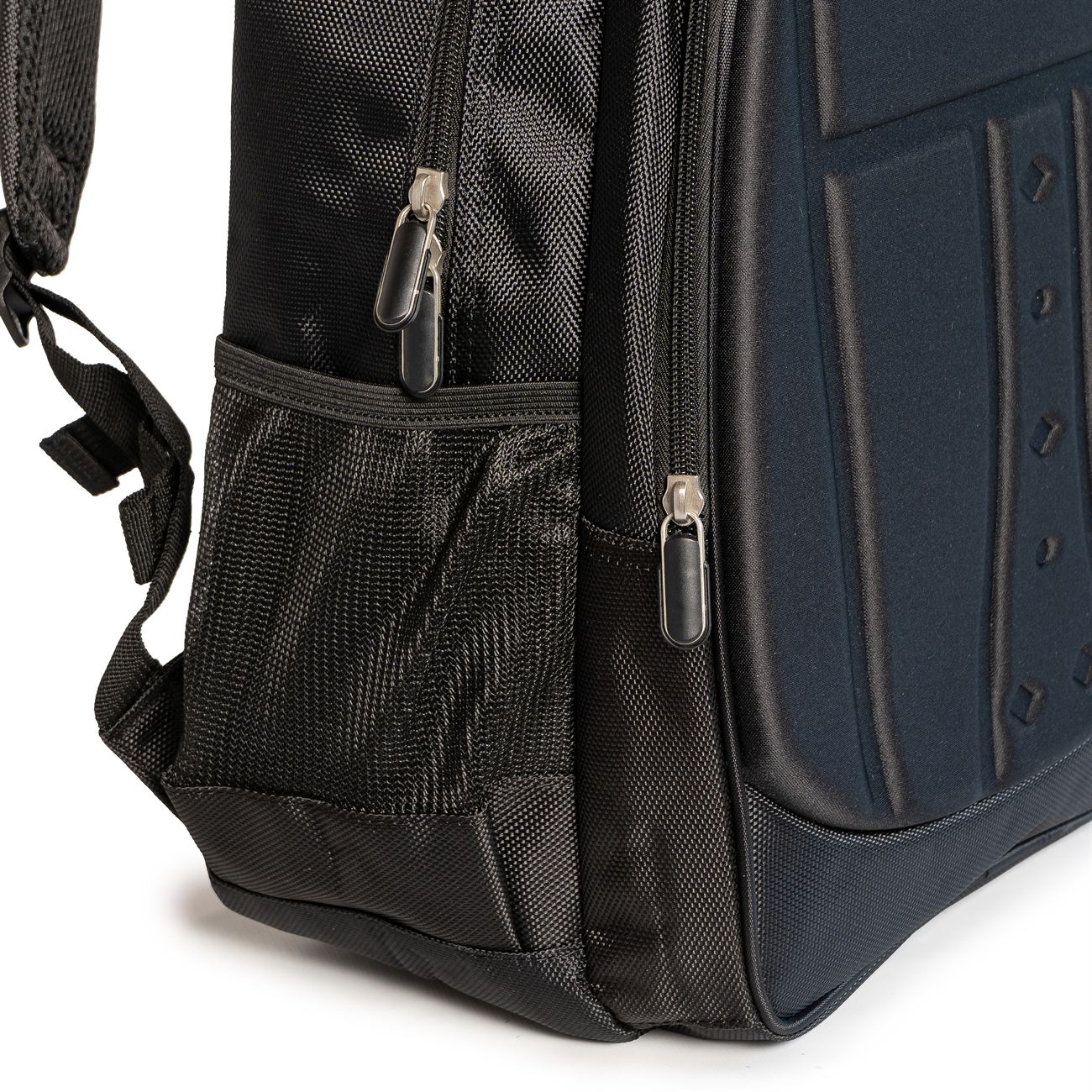 Mochila porta Notebook súper resistente e impermeable. Frente de material termoformado. Presenta dos compartimiento, el primero con un cierre simple con bolsillos porta objetos en su interior, el segundo y principal, con cierre doble que contiene sobre el sector de la espalda el bolsillo porta notebook con sujetador con velcro. Interior forrado y acolchado. Posee dos bolsillos laterales en ripstop. Manija acolchada. Correas acolchadas ajustables. Soporte de espalda anatómico acolchado y reforzado. Correa para el carry on.