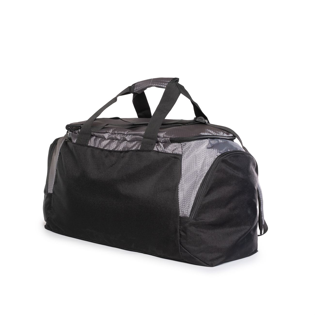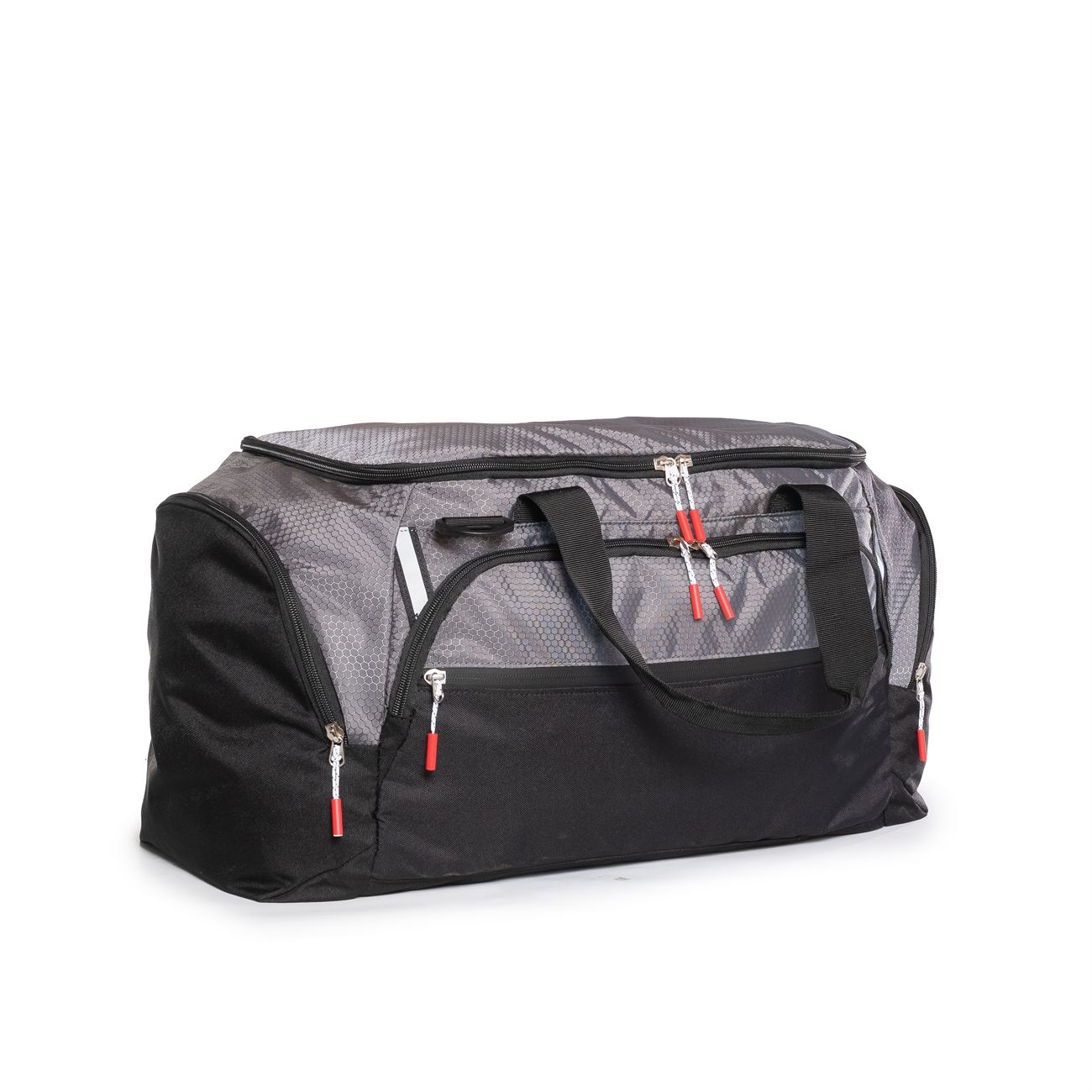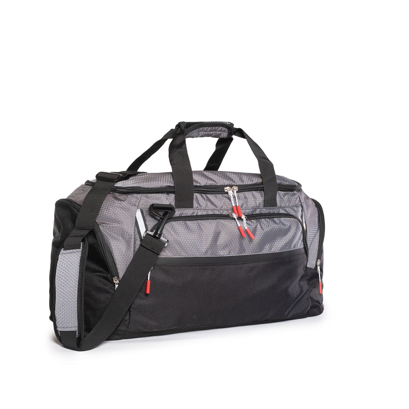 Manijas y correas con agarraderas acolchadas. Correa de colgar regulable. Bolsillos independientes en ambos laterales con cierre. Uno de ellos extensible hacia el interior. Todos los cierres traen tira cierre.