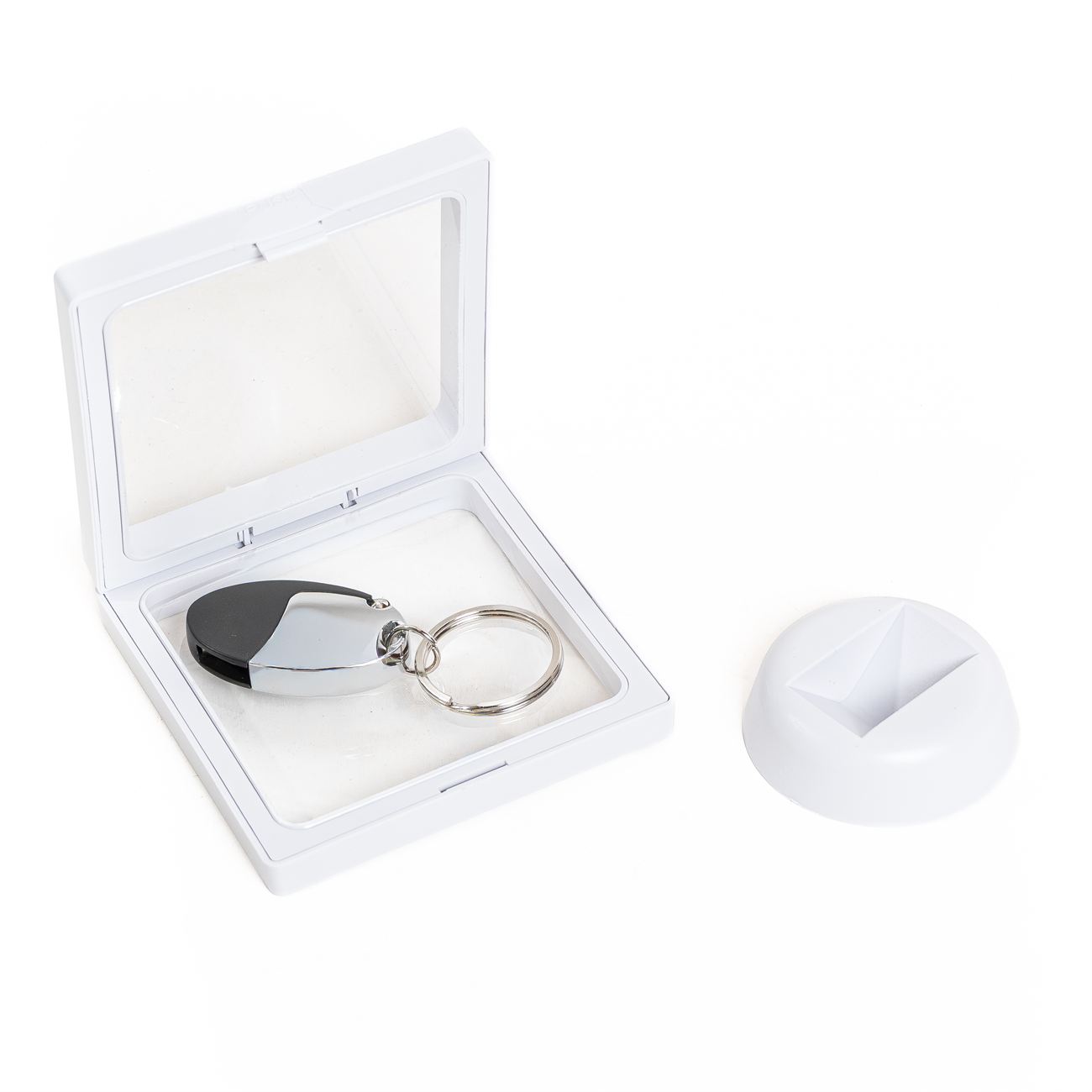 Descripción: Pendrive llavero de 16GB metálico combinado en silver y negro mate. Presentación en estuche plástico tipo sandwich, posee base sostenedora del estuche. Dimensiones: 4.5cm x 2.5cm x 0.8cm de ancho (sin el aro) Material: Metal.