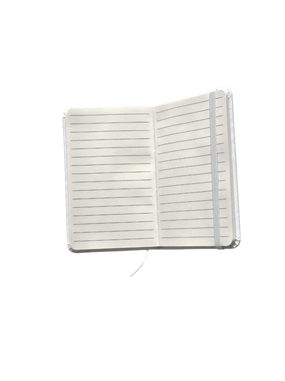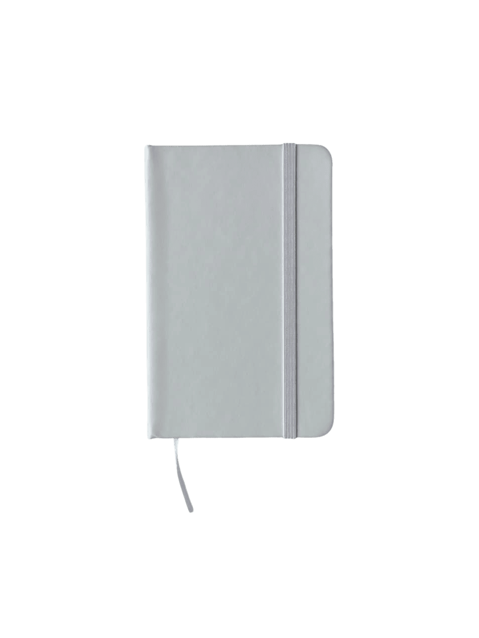 Cuaderno de tapas duras forrado en simil cuero PU. Posee 80 hojas rayadas, banda elástica de sujección al tono y cinta señaladora.